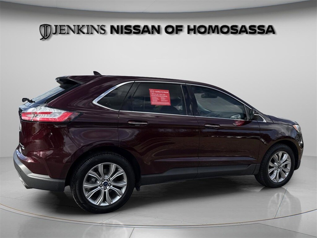 Certified. Burgundy 22/29 City/Highway MPG 2019 Ford Edge Titanium FWD 8-Speed Automatic EcoBoost 2.0L I4 GTDi DOHC Turbocharged VCT Jenkins has been doing business for over 50 years and we appreciate your business! Our used cars undergo an extensive Detail and Reconditioning Process, and are thoroughly inspected to meet the criteria for our exclusive warranty. Buy with confidence at Jenkins Nissan of Homosassa! We spend an average of $2779 in Detail and Reconditioning on every used car. The Reconditioning and Maintenance Repair History is Available Upon Request. We don't just inspect, we fix :)