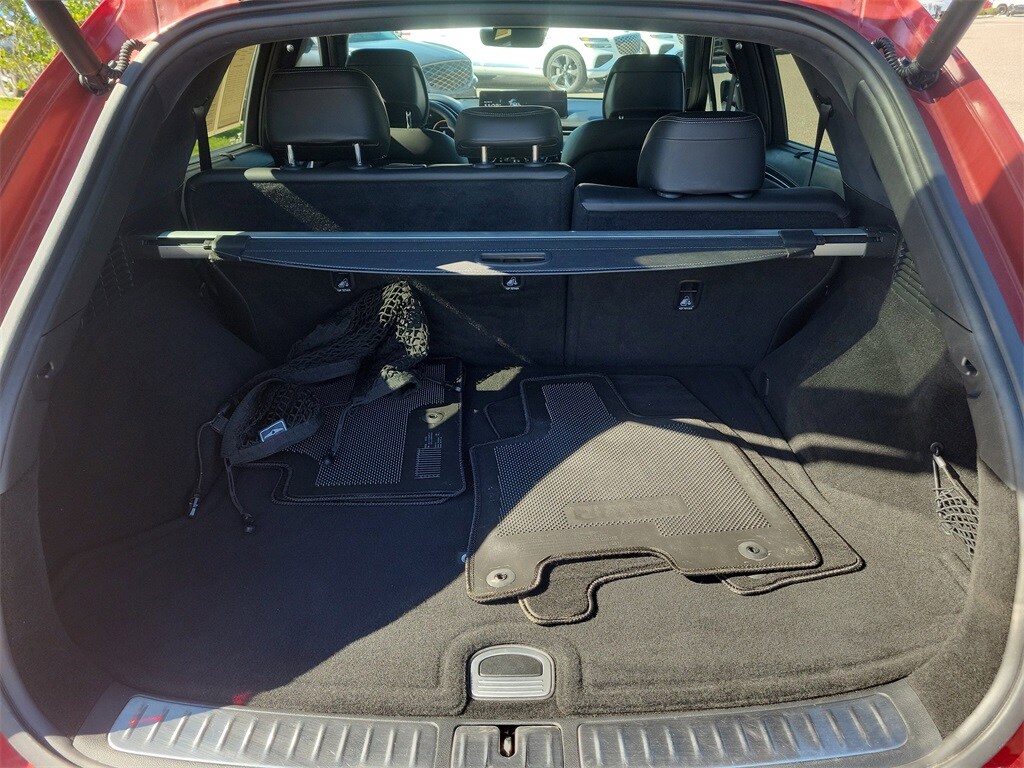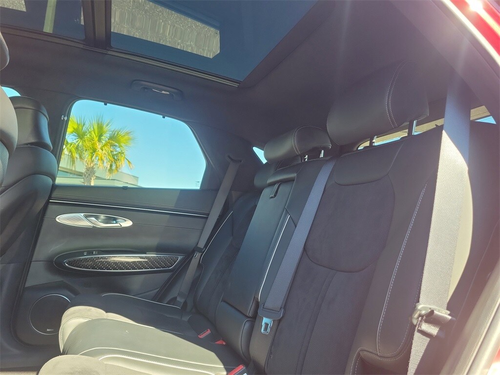 This vehicle comes equipped with Sport Prestige Package, 3.909 Axle Ratio, 4-Wheel Disc Brakes, 9 Speakers, ABS brakes, Adaptive suspension, Air Conditioning, Alloy wheels, AM/FM radio: SiriusXM, Android Auto & Apple CarPlay, Anti-whiplash front head restraints, Auto High-beam Headlights, Auto-dimming door mirrors, Auto-dimming Rear-View mirror, Automatic temperature control, Brake assist, Bumpers: body-color, Cargo Cover, Cargo Tray, Delay-off headlights, Driver door bin, Driver vanity mirror, Dual front impact airbags, Dual front side impact airbags, Electronic Stability Control, Emergency communication system, Exterior Parking Camera Rear, First Aid Kit, Four wheel independent suspension, Front anti-roll bar, Front Bucket Seats, Front Center Armrest w/Storage, Front dual zone A/C, Front reading lights, Fully automatic headlights, Garage door transmitter: HomeLink, Heated & Ventilated Front Bucket Seats, Heated door mirrors, Heated front seats, Illuminated entry, Knee airbag, Leather Seating Surfaces w/Mesh Insert, Low tire pressure warning, Memory seat, Navigation System, Occupant sensing airbag, Outside temperature display, Overhead airbag, Overhead console, Panic alarm, Passenger door bin, Passenger vanity mirror, Power door mirrors, Power driver seat, Power Liftgate, Power moonroof, Power passenger seat, Power steering, Power windows, Radio: AM/FM/SiriusXM/HD Premium Audio System, Rain sensing wipers, Rear anti-roll bar, Rear Parking Sensors, Rear reading lights, Rear seat center armrest, Rear window defroster, Rear window wiper, Remote keyless entry, Security system, Speed control, Speed-sensing steering, Speed-Sensitive Wipers, Split folding rear seat, Spoiler, Steering wheel memory, Steering wheel mounted audio controls, Tachometer, Telescoping steering wheel, Tilt steering wheel, Traction control, Trip computer, Turn signal indicator mirrors, Variably intermittent wipers, Ventilated front seats, and Wheels: 19" Sport Dark Hyper Silver Aluminum .