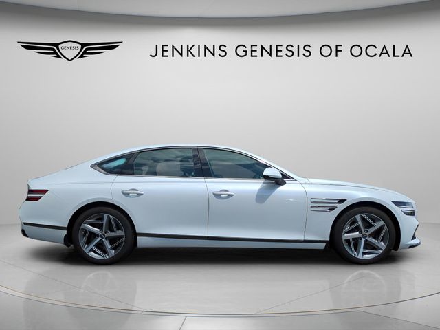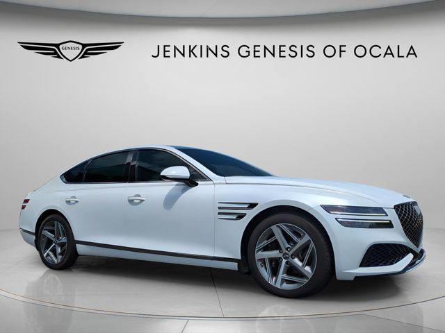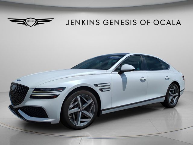 17/25 City/Highway MPG Certified. Uyuni White 2024 Genesis G80 3.5T AWD 8-Speed Automatic 3.5L V6 PDI Turbocharged DOHC 24V LEV3-ULEV70 375hp