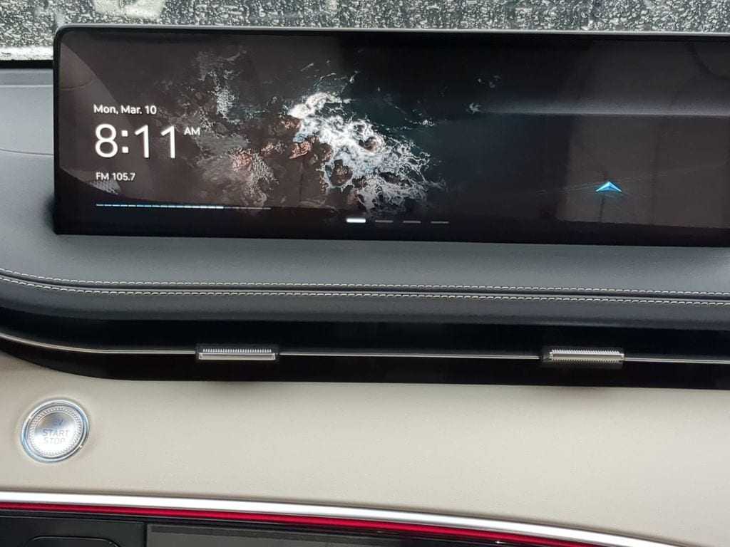 This vehicle comes equipped with Prestige Package (12.3" 3D Digital Instrument Cluster, Active Noise Control, Head-Up Display, Heated 2nd Row Seats, Heated Steering Wheel, Leatherette Wrapped Upper Instrument Panel, Lexicon Premium Audio System, Manual Rear Door Shades, Microfiber Suede Headliner, Nappa Leather Seating Surfaces, Option Group 02, and White Brake Calipers), 4-Wheel Disc Brakes, 8 Speakers, ABS brakes, Adaptive suspension, Air Conditioning, Alloy wheels, AM/FM radio: SiriusXM, Android Auto & Apple CarPlay, Anti-whiplash front head restraints, Auto High-beam Headlights, Auto-dimming door mirrors, Auto-dimming Rear-View mirror, Automatic temperature control, Brake assist, Bumpers: body-color, Cargo Cover, Cargo Tray, Delay-off headlights, Driver door bin, Driver vanity mirror, Dual front impact airbags, Dual front side impact airbags, Electronic Stability Control, Emergency communication system: Genesis Connected Services, Exterior Parking Camera Rear, First Aid Kit, Four wheel independent suspension, Front anti-roll bar, Front Bucket Seats, Front Center Armrest, Front dual zone A/C, Front reading lights, Fully automatic headlights, Garage door transmitter: HomeLink, Heated & Ventilated Front Bucket Seats, Heated door mirrors, Heated front seats, Illuminated entry, Knee airbag, Leather Seating Surfaces, Leather steering wheel, Low tire pressure warning, Memory seat, Navigation System, Occupant sensing airbag, Outside temperature display, Overhead airbag, Overhead console, Panic alarm, Passenger door bin, Passenger vanity mirror, Power door mirrors, Power driver seat, Power Liftgate, Power moonroof, Power passenger seat, Power steering, Power windows, Radio: 14.5" Navigation System w/AM/FM/HD Radio, Rain sensing wipers, Rear air conditioning, Rear anti-roll bar, Rear reading lights, Rear seat center armrest, Rear window defroster, Rear window wiper, Remote keyless entry, Roof Rail Cross Bars, Security system, Speed control, Speed-sensing steering, Speed-Sensitive Wipers, Split folding rear seat, Spoiler, Steering wheel memory, Steering wheel mounted audio controls, Telescoping steering wheel, Traction control, Trip computer, Turn signal indicator mirrors, Variably intermittent wipers, Ventilated front seats, and Wheels: 20" x 8.5J Dark Sputtering Alloy .