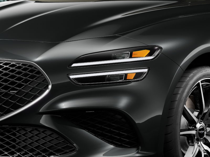 This vehicle comes equipped with Option Group 01, 4-Wheel Disc Brakes, 6 Speakers, ABS brakes, Air Conditioning, All Season Fitted Liners, Alloy wheels, AM/FM radio: SiriusXM, Android Auto & Apple CarPlay, Anti-whiplash front head restraints, Auto High-beam Headlights, Auto-dimming Rear-View mirror, Automatic temperature control, Brake assist, Bumpers: body-color, Delay-off headlights, Driver door bin, Driver vanity mirror, Dual front impact airbags, Dual front side impact airbags, Electronic Stability Control, Emergency communication system: Genesis Connected Services, Exterior Parking Camera Rear, First Aid Kit, Four wheel independent suspension, Front anti-roll bar, Front Bucket Seats, Front Center Armrest, Front dual zone A/C, Front reading lights, Fully automatic headlights, Garage door transmitter: HomeLink, Heated door mirrors, Heated front seats, Heated Multi-Adjustable Front Bucket Seats, Illuminated entry, Knee airbag, Leatherette Seating Surfaces, Low tire pressure warning, Navigation System, Occupant sensing airbag, Outside temperature display, Overhead airbag, Overhead console, Panic alarm, Passenger door bin, Passenger vanity mirror, Power door mirrors, Power driver seat, Power passenger seat, Power steering, Power windows, Radio: AM/FM/SiriusXM/HD Audio System, Rear anti-roll bar, Rear reading lights, Rear seat center armrest, Rear side impact airbag, Rear window defroster, Remote keyless entry, Reversible Cargo Tray, Security system, Speed control, Speed-Sensitive Wipers, Split folding rear seat, Steering wheel mounted audio controls, Tachometer, Telescoping steering wheel, Traction control, Trip computer, Turn signal indicator mirrors, Variably intermittent wipers, and Wheels: 19" x 8.0J Fr & 19" x 8.5J Rr Alloy .