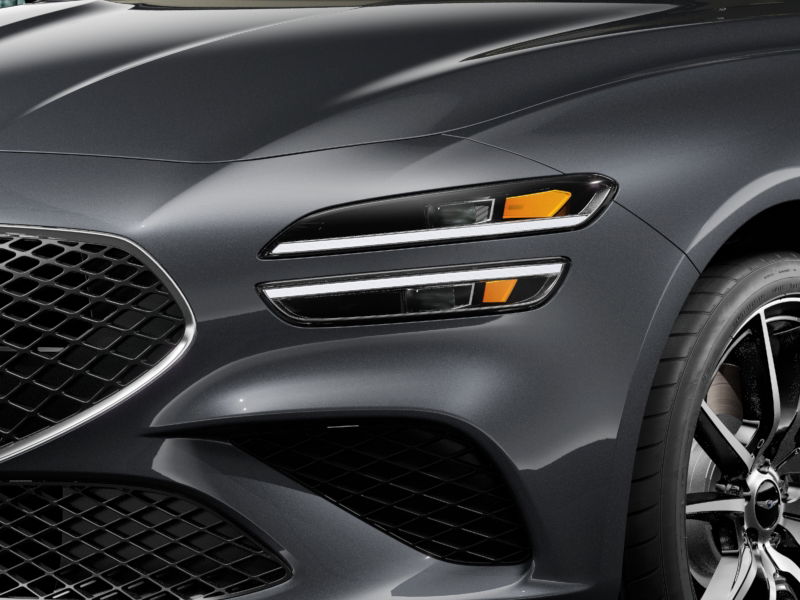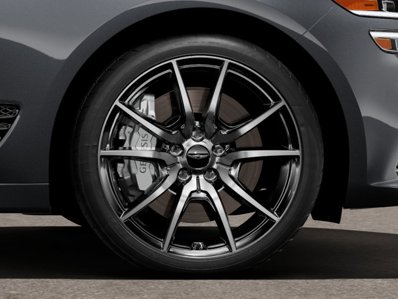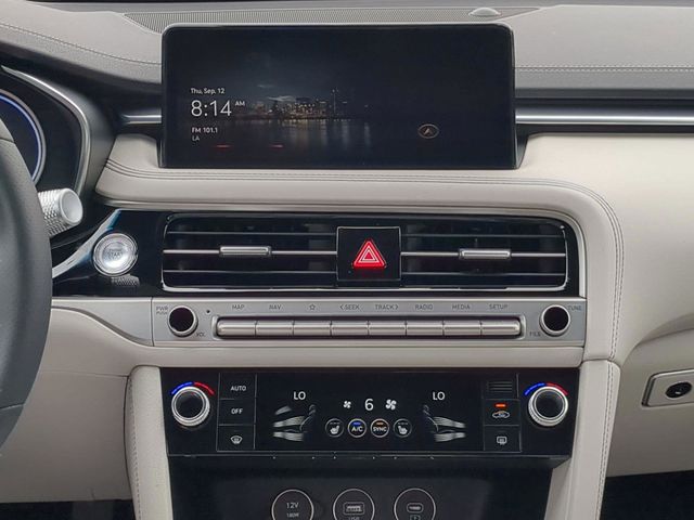This vehicle comes equipped with Option Group 01, Genesis Certified, 4-Wheel Disc Brakes, 6 Speakers, ABS brakes, Air Conditioning, Alloy wheels, AM/FM radio: SiriusXM, Android Auto & Apple CarPlay, Anti-whiplash front head restraints, Auto High-beam Headlights, Auto-dimming Rear-View mirror, Automatic temperature control, Brake assist, Bumpers: body-color, Delay-off headlights, Driver door bin, Driver vanity mirror, Dual front impact airbags, Dual front side impact airbags, Electronic Stability Control, Emergency communication system: Genesis Connected Services, Exterior Parking Camera Rear, Four wheel independent suspension, Front anti-roll bar, Front Bucket Seats, Front Center Armrest, Front dual zone A/C, Front reading lights, Fully automatic headlights, Garage door transmitter: HomeLink, Heated door mirrors, Heated front seats, Heated Multi-Adjustable Front Bucket Seats, Illuminated entry, Knee airbag, Leatherette Seating Surfaces, Low tire pressure warning, Mudguards, Navigation System, Occupant sensing airbag, Outside temperature display, Overhead airbag, Overhead console, Panic alarm, Passenger door bin, Passenger vanity mirror, Power door mirrors, Power driver seat, Power passenger seat, Power steering, Power windows, Radio: AM/FM/SiriusXM/HD Audio System, Rear anti-roll bar, Rear reading lights, Rear seat center armrest, Rear side impact airbag, Rear window defroster, Remote keyless entry, Reversible Cargo Tray, Security system, Speed control, Speed-Sensitive Wipers, Split folding rear seat, Steering wheel mounted audio controls, Tachometer, Telescoping steering wheel, Traction control, Trip computer, Turn signal indicator mirrors, Variably intermittent wipers, Wheel Locks, and Wheels: 19" x 8.0J Fr & 19" x 8.5J Rr Alloy .