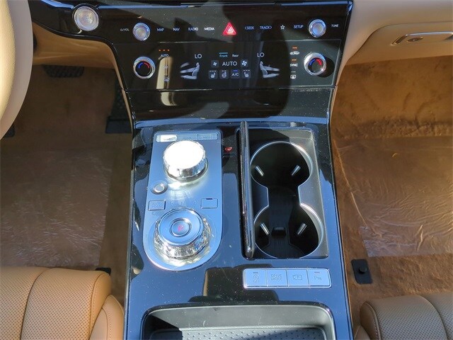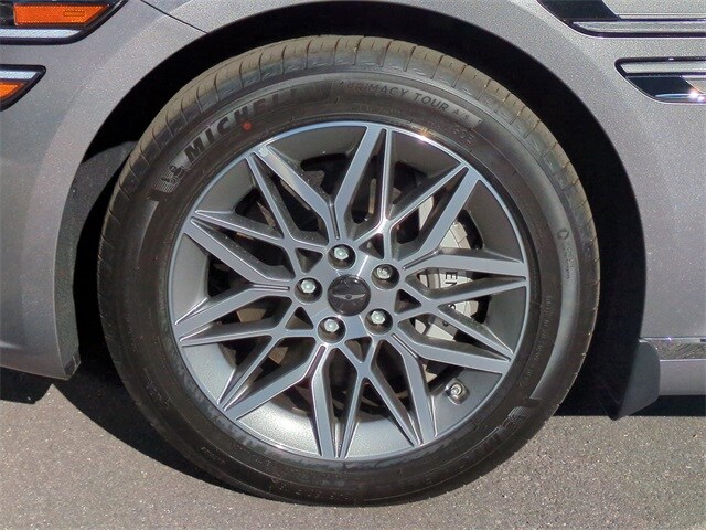 This vehicle comes equipped with Option Group 01, Genesis Certified, 12 Speakers, 4-Wheel Disc Brakes, ABS brakes, Air Conditioning, Alloy wheels, AM/FM radio: SiriusXM, Android Auto & Apple CarPlay, Anti-whiplash front head restraints, Auto High-beam Headlights, Auto tilt-away steering wheel, Auto-dimming door mirrors, Auto-dimming Rear-View mirror, Automatic temperature control, Bumpers: body-color, Compass, Delay-off headlights, Driver door bin, Driver vanity mirror, Dual front impact airbags, Dual front side impact airbags, Electronic Stability Control, Emergency communication system: Genesis Connected Services, Exterior Parking Camera Rear, First Aid Kit, Four wheel independent suspension, Front anti-roll bar, Front Bucket Seats, Front Center Armrest, Front dual zone A/C, Front reading lights, Fully automatic headlights, Garage door transmitter: HomeLink, Heated door mirrors, Heated Front Bucket Seats, Heated front seats, Heated rear seats, Heated steering wheel, Illuminated Door Scuff Plates, Illuminated entry, Knee airbag, Leather steering wheel, Leatherette Seating Surfaces, Low tire pressure warning, Memory seat, Navigation System, Occupant sensing airbag, Outside temperature display, Overhead airbag, Overhead console, Panic alarm, Passenger door bin, Passenger vanity mirror, Power door mirrors, Power driver seat, Power passenger seat, Power steering, Power windows, Radio data system, Radio: AM/FM/HD/SiriusXM Audio System, Rain sensing wipers, Rear anti-roll bar, Rear reading lights, Rear seat center armrest, Rear side impact airbag, Rear window defroster, Remote keyless entry, Security system, Speed control, Speed-sensing steering, Speed-Sensitive Wipers, Steering wheel memory, Steering wheel mounted audio controls, Tachometer, Telescoping steering wheel, Tilt steering wheel, Traction control, Trip computer, Turn signal indicator mirrors, Variably intermittent wipers, and Wheels: 18" x 8.0J Alloy .