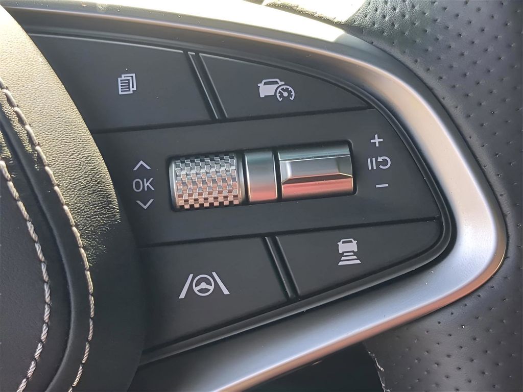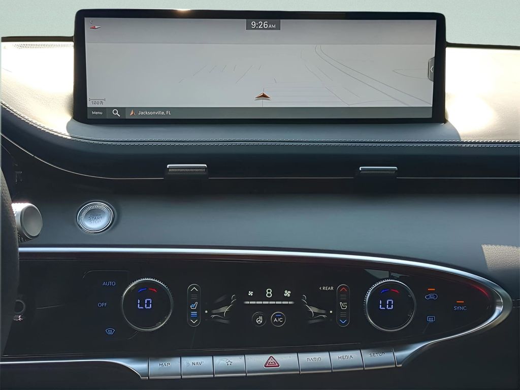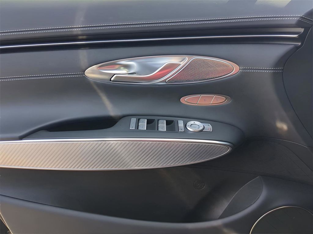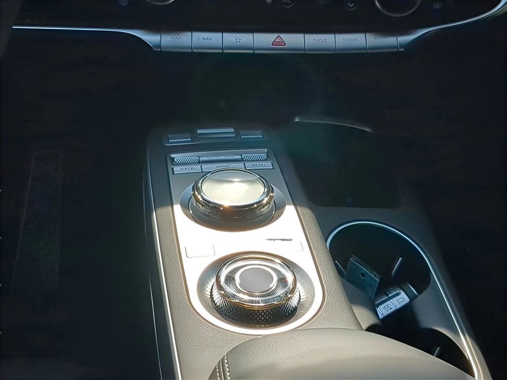 This vehicle comes equipped with Sport Appearance, Sport Prestige Package (12.3" 3D Digital Instrument Cluster, 2nd Row 110V AC Power Outlet, 3-Zone Climate Control, 4-Way Power Lumbar Front Passenger Seat, Adjustable Interior Ambient Lighting, Advanced Rear Occupant Alert, Alloy Pedals, Aluminum Trim w/Haptic Carbon Pattern, Blind-Spot View Monitor, Ergo Motion Seat, Forward Attention Warning, Forward/Reverse Parking Distance Warning, Genesis Digital Key, Heated Steering Wheel, Integrated Memory System (IMS), Leather Seating Surfaces w/Mesh Insert, Leatherette Wrapped Upper Instrument Panel, Lexicon Premium Audio, Manual Rear Door Shades, Option Group 02, Option Group 03, Option Group 04, Passenger Walk-In Device, Power Driver Seat Bolster & Cushion Extension, Power Folding ECM Mirrors w/Genesis Logo Lamp, Power Telescoping Steering Wheel, Power Tilt & Slide Panoramic Sunroof, Remote Smart Parking Assist, Reverse Parking Collision-Avoidance Assist, Surround View Monitor, Ventilated Front Seats, and Wheels: 21" Dark Sputtering Sport Alloy), 4-Wheel Disc Brakes, 9 Speakers, ABS brakes, Air Conditioning, Alloy wheels, Aluminum Trim w/Spin Brushed Pattern, AM/FM radio: SiriusXM, Android Auto & Apple CarPlay, Anti-whiplash front head restraints, Auto High-beam Headlights, Auto-dimming Rear-View mirror, Automatic temperature control, Brake assist, Bumpers: body-color, Cargo Cover, Delay-off headlights, Driver door bin, Driver vanity mirror, Dual front impact airbags, Dual front side impact airbags, Electronic Stability Control, Emergency communication system: Genesis Connected Services, Exterior Parking Camera Rear, First Aid Kit, Four wheel independent suspension, Front anti-roll bar, Front Bucket Seats, Front Center Armrest w/Storage, Front dual zone A/C, Front reading lights, Fully automatic headlights, Garage door transmitter: HomeLink, Heated door mirrors, Heated Front Bucket Seats, Heated front seats, Illuminated Door Scuff Plates, Illuminated entry, Knee airbag, Leather Seating Surfaces, Leather steering wheel, Leatherette Seating Surfaces, Low tire pressure warning, Navigation System, Occupant sensing airbag, Outside temperature display, Overhead airbag, Overhead console, Panic alarm, Passenger door bin, Passenger vanity mirror, Power door mirrors, Power driver seat, Power Liftgate, Power passenger seat, Power steering, Power windows, Radio: 14.5" Navigation System w/AM/FM/HD Radio, Rain sensing wipers, Rear anti-roll bar, Rear Parking Sensors, Rear reading lights, Rear seat center armrest, Rear window defroster, Rear window wiper, Remote keyless entry, Security system, Speed control, Speed-sensing steering, Speed-Sensitive Wipers, Split folding rear seat, Spoiler, Steering wheel mounted audio controls, Tachometer, Telescoping steering wheel, Traction control, Trip computer, Turn signal indicator mirrors, Variably intermittent wipers, Wave Line Backlit Trim, and Wheels: 19" Dark Hyper Silver Alloy .