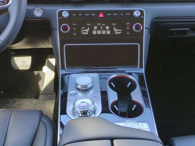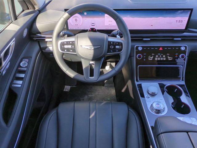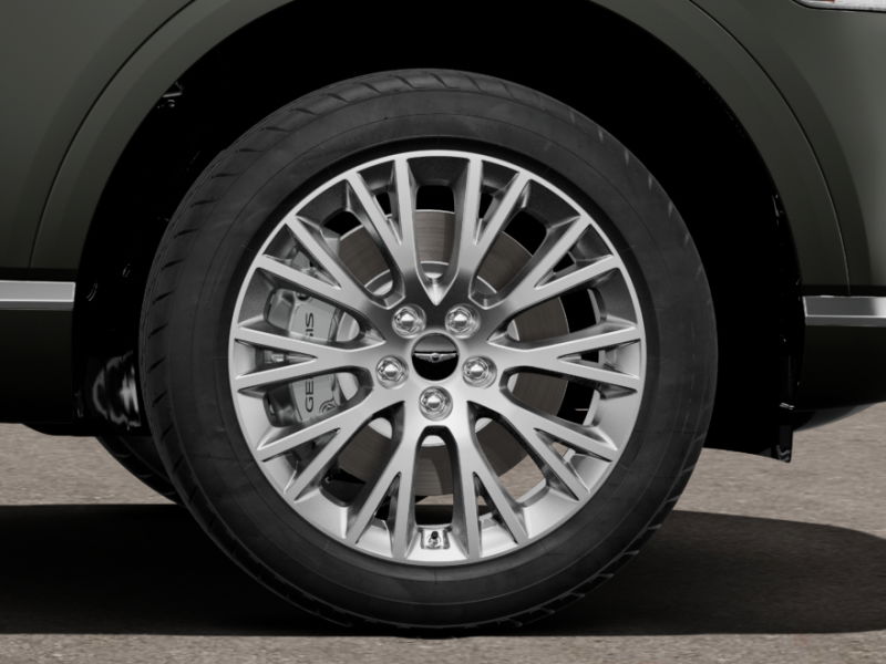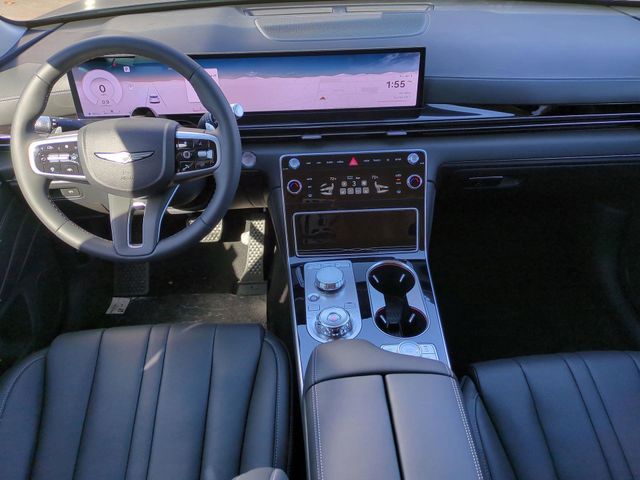 This vehicle comes equipped with Option Group 01, Genesis Certified, 12 Speakers, 4-Wheel Disc Brakes, ABS brakes, Air Conditioning, Alloy wheels, AM/FM radio: SiriusXM, Anti-whiplash front head restraints, Auto High-beam Headlights, Auto tilt-away steering wheel, Auto-dimming door mirrors, Auto-dimming Rear-View mirror, Auto-leveling suspension, Automatic temperature control, Brake assist, Bumpers: body-color, Cargo Net, Compass, Delay-off headlights, Driver door bin, Driver vanity mirror, Dual front impact airbags, Dual front side impact airbags, Electronic Stability Control, Emergency communication system: Genesis Connected Services, Exterior Parking Camera Rear, Four wheel independent suspension, Fragrance Cartridge, Front & Rear Mudguards, Front anti-roll bar, Front Bucket Seats, Front Center Armrest, Front dual zone A/C, Front reading lights, Fully automatic headlights, Garage door transmitter: HomeLink, Heated door mirrors, Heated Front Bucket Seats, Heated front seats, Illuminated entry, Knee airbag, Leather steering wheel, Leatherette Seating Surfaces, Low tire pressure warning, Memory seat, Navigation System, Occupant sensing airbag, Outside temperature display, Overhead airbag, Overhead console, Panic alarm, Passenger door bin, Passenger vanity mirror, Power door mirrors, Power driver seat, Power Liftgate, Power passenger seat, Power steering, Power windows, Radio data system, Radio: AM/FM/SiriusXM/HD, Rain sensing wipers, Rear air conditioning, Rear anti-roll bar, Rear reading lights, Rear seat center armrest, Rear side impact airbag, Rear window defroster, Rear window wiper, Remote keyless entry, Roadside Assistance Kit, Security system, Speed control, Speed-sensing steering, Speed-Sensitive Wipers, Split folding rear seat, Spoiler, Steering wheel memory, Steering wheel mounted audio controls, Tachometer, Telescoping steering wheel, Tilt steering wheel, Traction control, Trip computer, Turn signal indicator mirrors, Variably intermittent wipers, and Wheels: 19" x 8.5J Medium Metallic Gray Alloy .