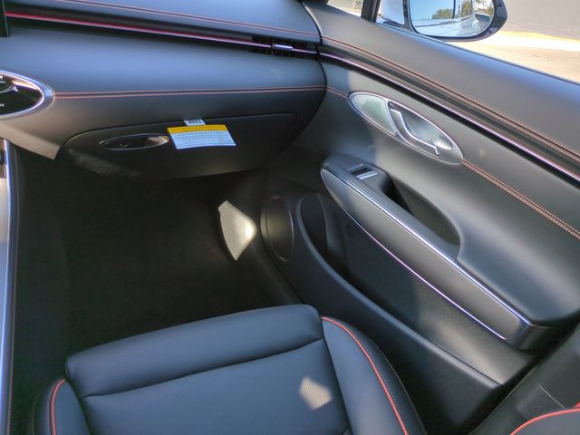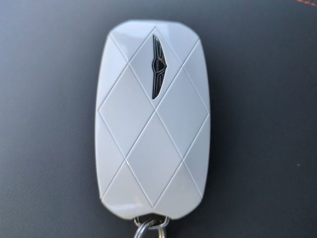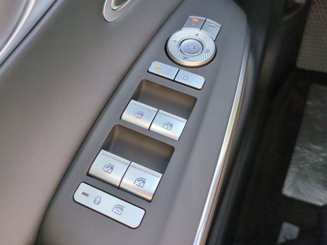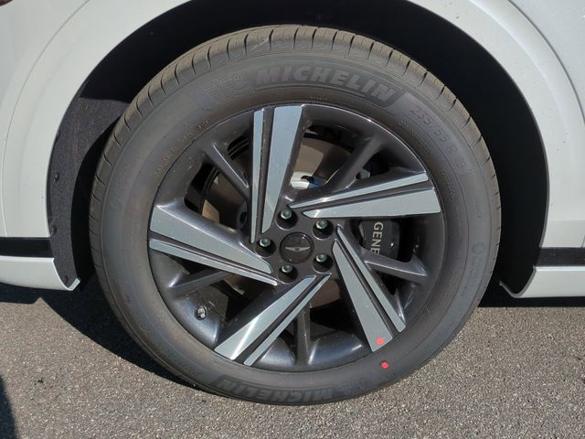 This vehicle comes equipped with Option Group 01, Genesis Certified, 16 Speakers, 4-Wheel Disc Brakes, ABS brakes, Adaptive suspension, Air Conditioning, Alloy wheels, AM/FM radio: SiriusXM, Android Auto & Apple CarPlay, Anti-whiplash front head restraints, Auto High-beam Headlights, Auto-dimming door mirrors, Auto-dimming Rear-View mirror, Automatic temperature control, Brake assist, Bumpers: body-color, Cargo Cover, Delay-off headlights, Driver door bin, Driver vanity mirror, Dual front impact airbags, Dual front side impact airbags, Electronic Stability Control, Emergency communication system: Genesis Connected Services, Exterior Parking Camera Rear, Four wheel independent suspension, Front anti-roll bar, Front Bucket Seats, Front Center Armrest w/Storage, Front dual zone A/C, Front reading lights, Fully automatic headlights, Garage door transmitter: HomeLink, Heated and Ventilated Front Bucket Seats, Heated door mirrors, Heated front seats, Heated steering wheel, Illuminated entry, Knee airbag, Leather steering wheel, Low tire pressure warning, Memory seat, Navigation System, Occupant sensing airbag, Outside temperature display, Overhead airbag, Overhead console, Panic alarm, Passenger door bin, Passenger vanity mirror, Power door mirrors, Power driver seat, Power Liftgate, Power moonroof, Power passenger seat, Power steering, Power windows, Radio: 14.5" Navigation System with AM/FM/HD, Rain sensing wipers, Rear anti-roll bar, Rear reading lights, Rear seat center armrest, Rear window defroster, Rear window wiper, Remote keyless entry, Security system, Speed control, Speed-sensing steering, Speed-Sensitive Wipers, Split folding rear seat, Spoiler, Sport Leather Seating Surfaces, Steering wheel memory, Steering wheel mounted audio controls, Tachometer, Telescoping steering wheel, Tilt steering wheel, Traction control, Trip computer, Turn signal indicator mirrors, Variably intermittent wipers, Ventilated front seats, and Wheels: 19" Dark Metallic Glossy Alloy .