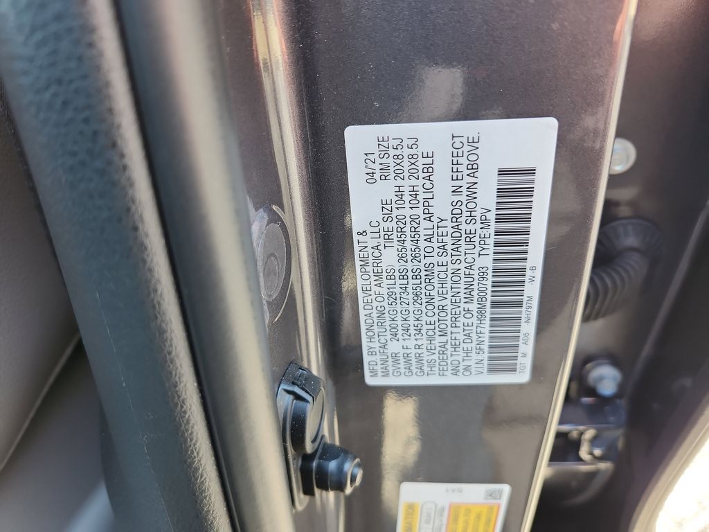 This vehicle comes equipped with Certified Select Certified, 10 Speakers, 4-Wheel Disc Brakes, A/V remote: CabinControl, ABS brakes, Apple CarPlay/Android Auto, Auto High-beam Headlights, Auto-dimming Rear-View mirror, Blind Spot Information (BSI) System warning, Brake assist, Driver's Seat Mounted Armrest, Dual front impact airbags, Dual front side impact airbags, Electronic Stability Control, Exterior Parking Camera Rear, Forward collision: Collision Mitigation Braking System (CMBS) + FCW mitigation, Four wheel independent suspension, Front dual zone A/C, Front fog lights, Fully automatic headlights, Garage door transmitter: HomeLink, Heated Front Bucket Seats, Lane departure: Lane Keeping Assist System (LKAS) active, Leather-Trimmed Seats, Memory seat, Navigation system: Honda Satellite-Linked Navigation System, Occupant sensing airbag, Power door mirrors, Power driver seat, Power Liftgate, Power moonroof, Radio: 540-Watt Premium Audio System w/10 Speakers, Security system, Speed-sensing steering, Steering wheel mounted audio controls, Traction control, Wheels: 20" Solid-Spoke Pewter Gray Alloy, 4.334 Axle Ratio, Air Conditioning, Alloy wheels, AM/FM radio: SiriusXM, Automatic temperature control, Bumpers: body-color, Compass, Delay-off headlights, Driver door bin, Driver vanity mirror, Emergency communication system: HondaLink, Front anti-roll bar, Front Bucket Seats, Front Center Armrest, Front reading lights, Heated door mirrors, Heated front seats, Heated rear seats, Illuminated entry, Low tire pressure warning, Outside temperature display, Overhead airbag, Overhead console, Panic alarm, Passenger door bin, Passenger seat mounted armrest, Passenger vanity mirror, Power passenger seat, Power steeri