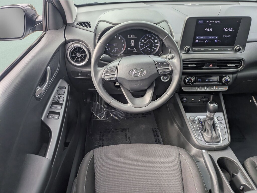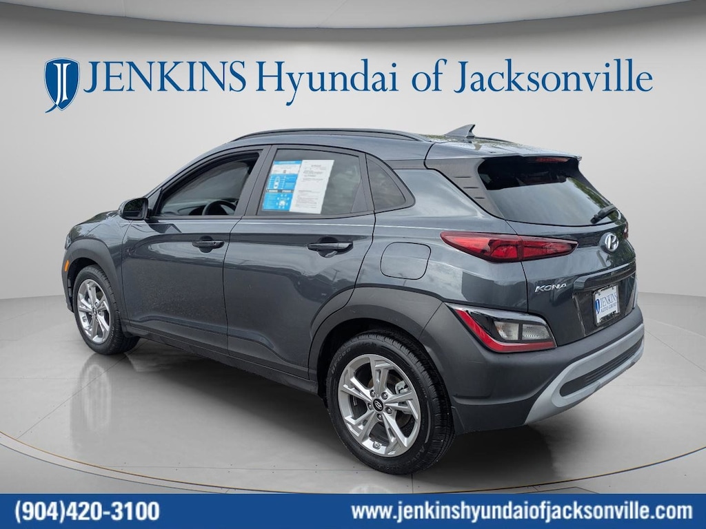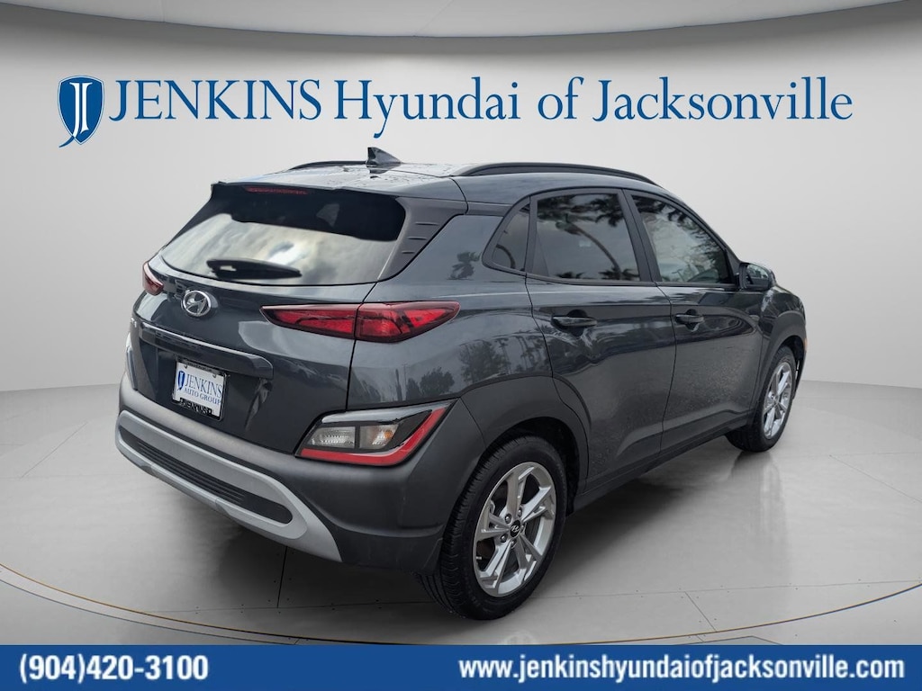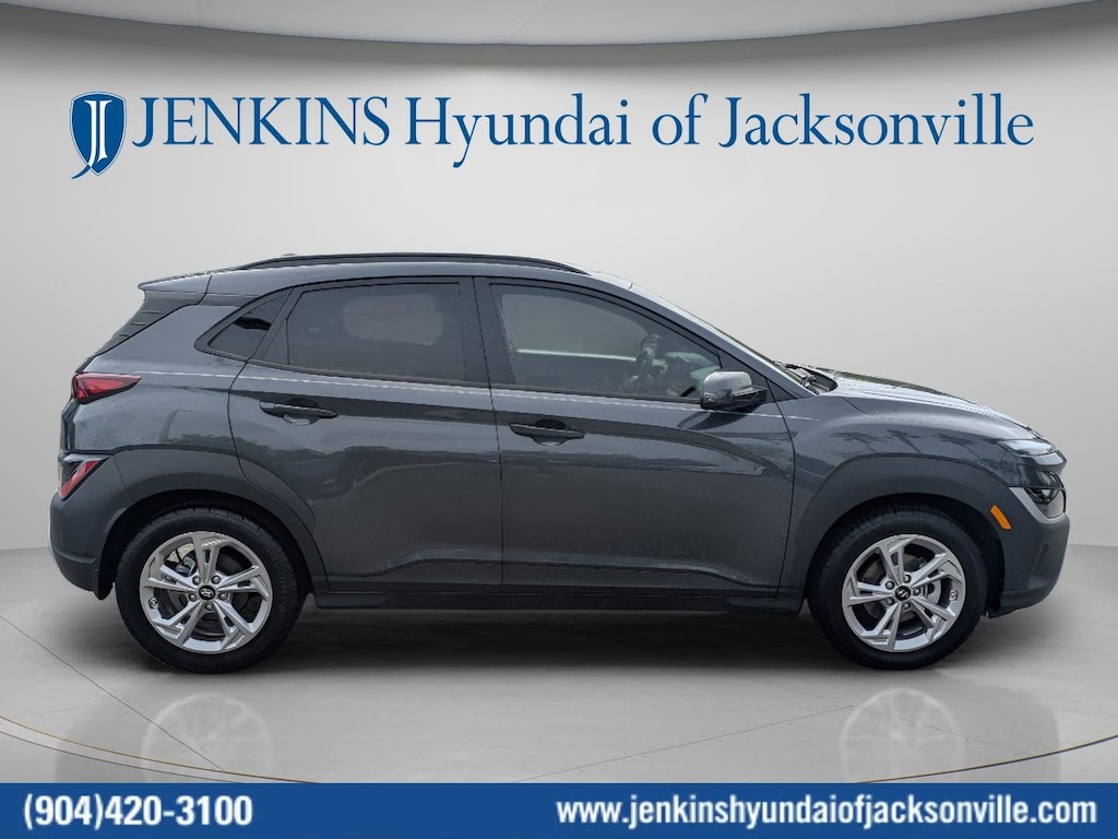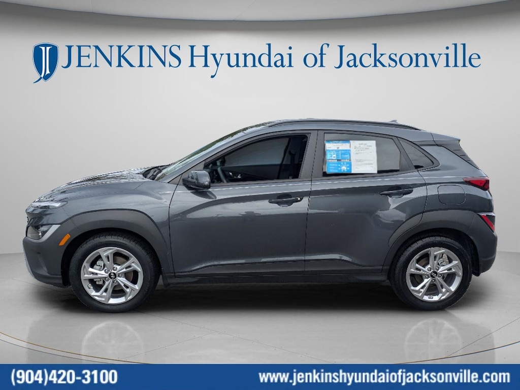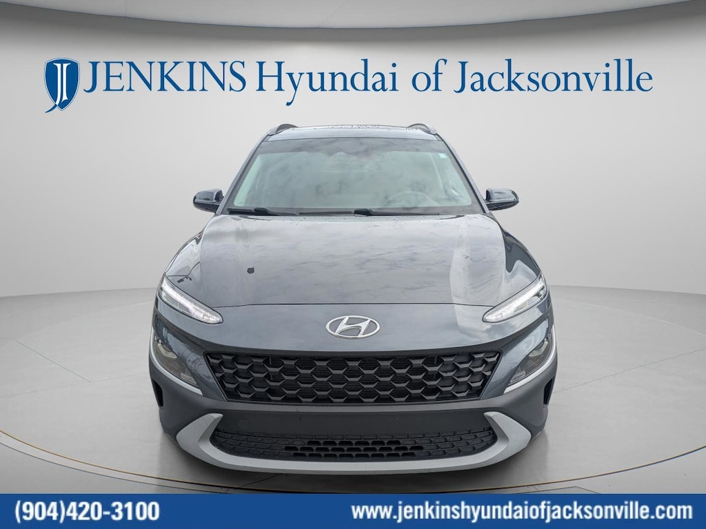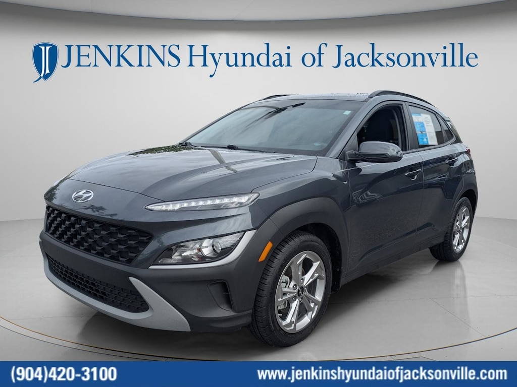 CARFAX One-Owner. Clean CARFAX. This 2022 Hyundai Kona SEL in Thunder Gray features Convenience Package (Automatic Temperature Control, Heated Front Seats, Hidden Cargo-Area Storage Compartment, Leather-Wrapped Shift Knob, Leather-Wrapped Steering Wheel, NFC Digital Key, Option Group 02, Power Tilt-and-Slide Sunroof, Power Windows w/Front Auto-Down/Up, Premium Dark Grey Body Cladding, and Wireless Device Charging), 4-Wheel Disc Brakes, 5.715 Axle Ratio, 6 Speakers, ABS brakes, Air Conditioning, Alloy wheels, AM/FM radio: SiriusXM, Apple CarPlay & Android Auto, Brake assist, Bumpers: body-color, Cargo Tray, Carpeted Floor Mats, Cloth Seat Trim, Delay-off headlights, Driver door bin, Driver vanity mirror, Dual front impact airbags, Dual front side impact airbags, Electronic Stability Control, Emergency communication system: Blue Link Connected Car Service (3-year complimentary subscription), Exterior Parking Camera Rear, Front anti-roll bar, Front Bucket Seats, Front Center Armrest, Front reading lights, Front wheel independent suspension, Fully automatic headlights, Heated door mirrors, Illuminated entry, Low tire pressure warning, Occupant sensing airbag, Overhead airbag, Overhead console, Panic alarm, Passenger door bin, Passenger vanity mirror, Power door mirrors, Power steering, Power windows, Radio: AM/FM/HD Radio/SiriusXM Audio System, Rear seat center armrest, Rear window defroster, Rear window wiper, Remote keyless entry, Security system, Speed control, Speed-sensing steering, Split folding rear seat, Spoiler, Steering wheel mounted audio controls, Tachometer, Telescoping steering wheel, Tilt steering wheel, Traction control, Trip computer, Turn signal indicator mirrors, Variably intermittent wipers, Wheel Locks, and Wheels: 17 x 7.0J Alloy . Visit our showroom 24/7 at Jenkinshyundaiofjacksonville or call 904-420-3100. FWD
