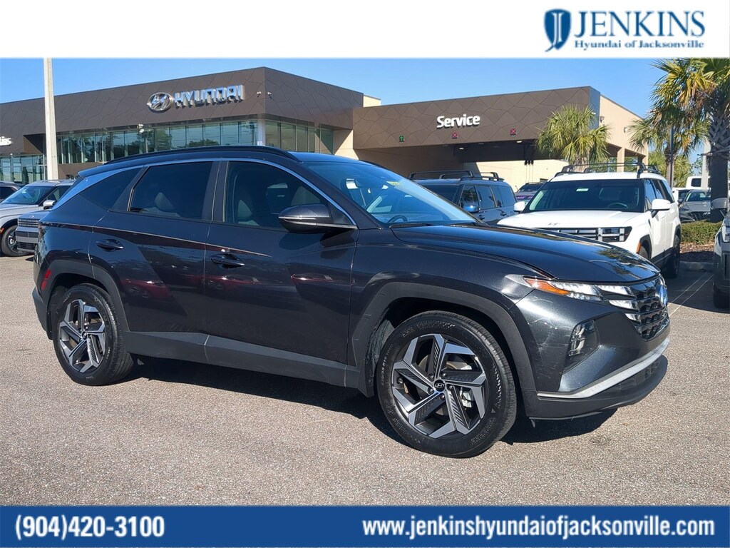 Clean CARFAX. This 2023 Hyundai Tucson SEL in Portofino Gray features Convenience Package (10.25" Digital Instrument Cluster, Auto-Dimming Interior Mirror w/Homelink, Dual Automatic Temperature Control, H-Tex Seat Trim, Leather-Wrapped Shift Knob, Leather-Wrapped Steering Wheel, LED Interior Lights (Room, Map), Option Group 02, Power Sunroof, Ultrasonic Rear Occupant Alert, and Wheels: 19" x 7.5J" Machine-Face Finish Alloy), 3.648 Axle Ratio, 4-Wheel Disc Brakes, 6 Speakers, ABS brakes, Air Conditioning, Alloy wheels, AM/FM radio: SiriusXM, Apple CarPlay & Android Auto, Auto High-beam Headlights, Brake assist, Bumpers: body-color, Cargo Net, Cargo Tray, Carpeted Floor Mats, Delay-off headlights, Driver door bin, Driver vanity mirror, Dual front impact airbags, Dual front side impact airbags, Electronic Stability Control, Emergency communication system: Blue Link Connected Car Service (3-year complimentary subscription), First Aid Kit, Four wheel independent suspension, Front and Rear Mudguards, Front anti-roll bar, Front Bucket Seats, Front Center Armrest, Front reading lights, Fully automatic headlights, Heated door mirrors, Heated Front Bucket Seats, Heated front seats, Illuminated entry, Low tire pressure warning, Occupant sensing airbag, Outside temperature display, Overhead airbag, Overhead console, Panic alarm, Passenger door bin, Passenger vanity mirror, Power door mirrors, Power driver seat, Power Liftgate, Power steering, Power windows, Radio data system, Radio: AM/FM/HD/SiriusXM Audio System, Rear anti-roll bar, Rear Bumper Applique, Rear seat center armrest, Rear window defroster, Rear window wiper, Remote keyless entry, Roof rack: rails only, Security system, Speed control, Split folding rear seat, Spoiler, Stain & Odor Resistant Cloth Seat Trim, Steering wheel mounted audio controls, Tachometer, Telescoping steering wheel, Tilt steering wheel, Traction control, Trip computer, Turn signal indicator mirrors, Variably intermittent wipers, and Wheels: 17" x 7.0J" Alloy . Visit our showroom 24/7 at Jenkinshyundaiofjacksonville or call 904-420-3100. FWD