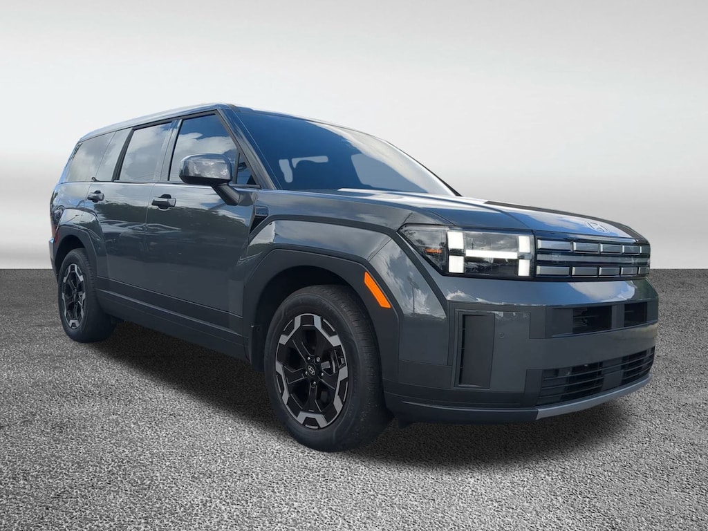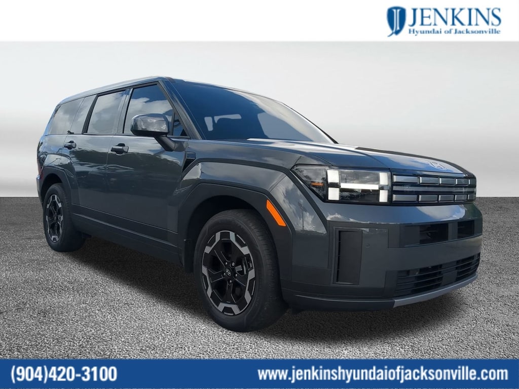 CARFAX One-Owner. This 2025 Hyundai Santa Fe SE in Ecotronic Gray features Option Group 01, 18" x 7.5J Alloy Wheels, 3rd row seats: bench, 4-Wheel Disc Brakes, 6 Speakers, ABS brakes, Air Conditioning, All Season Fitted Liners, Alloy wheels, AM/FM radio: SiriusXM, Apple CarPlay & Android Auto, Auto High-beam Headlights, Brake assist, Bumpers: body-color, Cargo Blocks, Cargo Organizer, Cargo Tray, Delay-off headlights, Driver door bin, Driver vanity mirror, Dual front impact airbags, Dual front side impact airbags, Electronic Stability Control, Emergency communication system, Exterior Parking Camera Rear, First Aid Kit, Four wheel independent suspension, Front anti-roll bar, Front Bucket Seats, Front Center Armrest, Front reading lights, Fully automatic headlights, Heated door mirrors, Illuminated entry, Knee airbag, Leather steering wheel, Low tire pressure warning, Occupant sensing airbag, Outside temperature display, Overhead airbag, Overhead console, Panic alarm, Passenger door bin, Passenger vanity mirror, Power door mirrors, Power Liftgate, Power steering, Power windows, Radio: AM/FM/HD Display Audio, Rear anti-roll bar, Rear seat center armrest, Rear side impact airbag, Rear window defroster, Rear window wiper, Remote keyless entry, Security system, Speed control, Speed-sensing steering, Split folding rear seat, Spoiler, Steering wheel mounted audio controls, Tachometer, Telescoping steering wheel, Tilt steering wheel, Traction control, Trip computer, Variably intermittent wipers, Wheel Locks, and YES Essentials Stain-Resistant Cloth Seat Trim . Visit our showroom 24/7 at Jenkinshyundaiofjacksonville or call 904-420-3100. FWD