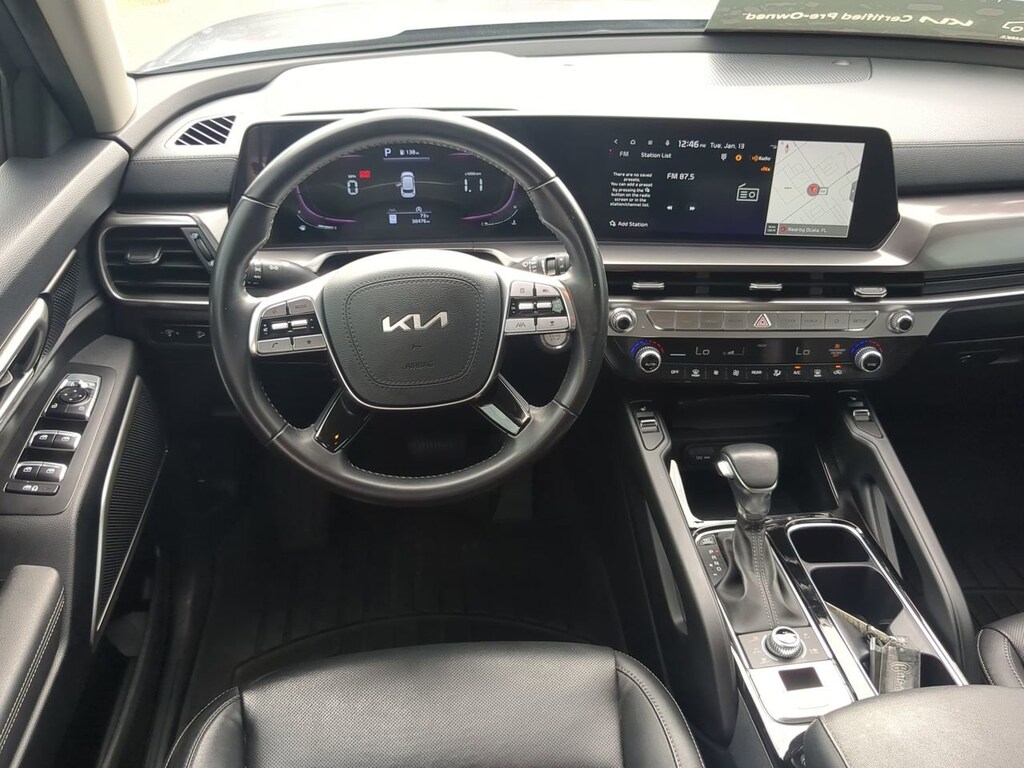Connected Cabin Your SUV is your digital command center. The 2023 Telluride features the stunning 12.3-inch Touchscreen Display with Navigation. It comes standard with Apple CarPlay and Android Auto, so you can project your Waze maps and Spotify playlists across the wide screen. Plus, the built-in Wireless Phone Charger keeps your device powered up without messy cords cluttering the console.
