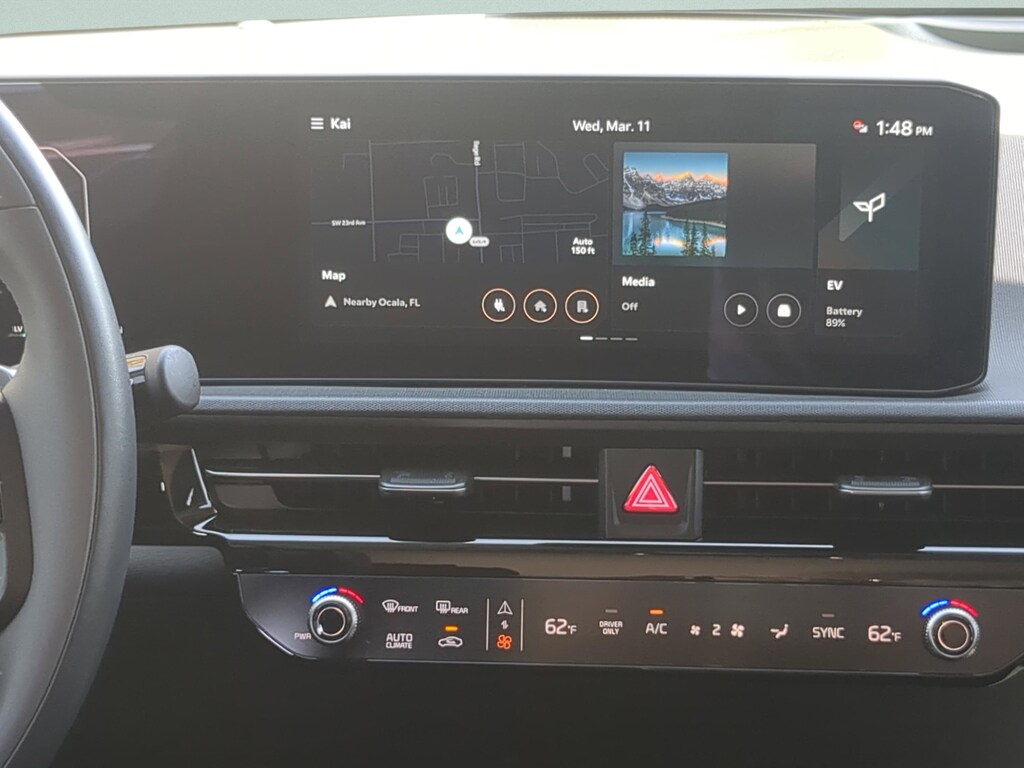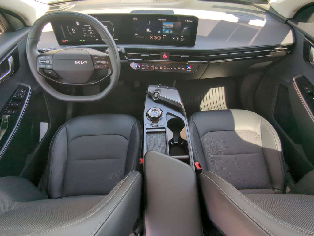 Your electric crossover is a highly advanced, futuristic digital command center. The 2025 EV6 Light features the breathtaking Dual 12.3-Inch Panoramic Connectivity Displays, seamlessly integrating your digital gauge cluster and the massive infotainment navigation screen behind a single piece of sweeping, curved glass. Crucially, this ultra-modern system comes equipped with Apple CarPlay and Android Auto. You can project your Waze routes, charging station maps, and Spotify playlists directly onto the massive dash. Plus, it features a built-in Wireless Phone Charger in the floating center console and multiple ultra-fast USB-C ports.