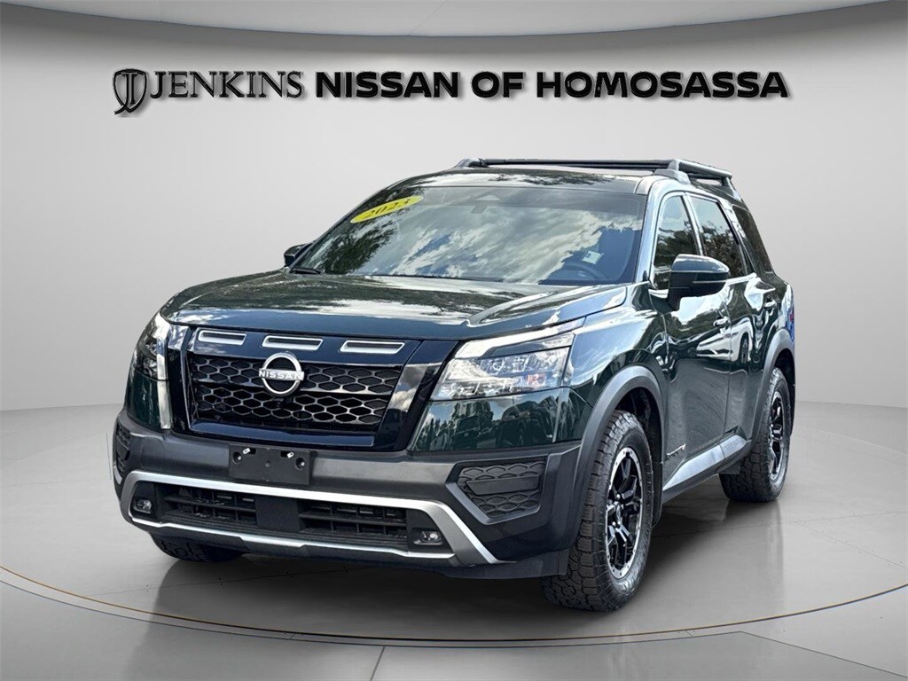 HARD TO FIND ROCK CREEK EDITION IN A SHARP COLOR COMBO! DON'T MISS OUT ON THIS STYLISH 3RD ROW HAULER WITH V6 OWER AND ATTITUDE! UNIQUE WHEELS WITH A/T TIRES - ROOF MOUNTED RACK - HEATED SEATS - BIRD'S EYE 360 CAMERA SYSTEM - AUTOMATIC TRI ZONE CLIMATE CONTROL... THIS IS THE ONE YOU WANT IF YOU'RE LOOKING FOR SOMETHING WITH A LITTLE MORE 'BITE' THAN YOUR RUN OF THE MILL SUV!! 4WD, Active Cruise Control, Auto High-beam Headlights, Automatic temperature control, Front fog lights, Fully automatic headlights, Heated Front Bucket Seats, Knee airbag, Leatherette-Appointed Seating Surfaces, NissanConnect featuring Apple CarPlay and Android Auto, Overhead airbag, Power driver seat, Rear Parking Sensors, Remote keyless entry, Steering wheel mounted audio controls. Enjoy Peace of Mind with Jenkins Nissan of Homosassa's EXCLUSIVE NATIONWIDE LIFETIME UNLIMITED MILEAGE WARRANTY! (See dealer for details, year and mileage limits apply). The price does not include tax, tag, license, an electronic filing fee of $449.00**, a private tag agency fee of $199.00**, and a predelivery service charge of $1199.00** **This charge represents costs and profit to the dealer for items such as inspecting, cleaning, and adjusting vehicles, as well as preparing documents related to the sale. * EPA-estimate metric: these are contingent on ideal conditions within a lab. Real-world situations such as carrying passengers or cargo, using climate control, driving style, and ambient temperatures can affect actual metrics. 20/23 City/Highway MPG Nissan Certified Details: