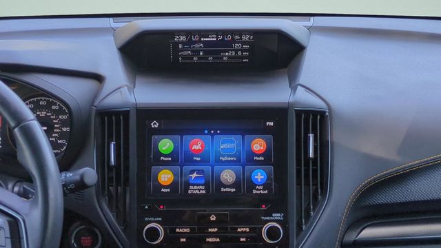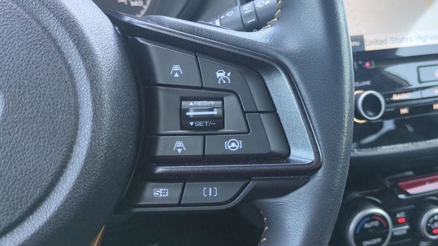 This vehicles comes equipped with 8" Audio w/harman/kardon & Power Rear Gate (harman/kardon 9-Speaker Audio System, Power Rear Gate, and Radio: Subaru Starlink 8.0" Multimedia Nav System), Subaru Certified Pre-Owned Certified, 4-Wheel Disc Brakes, 4.11 Axle Ratio, 6 Speakers, ABS brakes, Air Conditioning, Alloy wheels, AM/FM radio: SiriusXM, Anti-whiplash front head restraints, Auto High-beam Headlights, Automatic temperature control, Brake assist, Bumpers: body-color, Cargo Net, Carpeted Floor Mats - Wilderness, CD player, Door Scuff Protector - Wilderness, Driver door bin, Driver vanity mirror, Dual front impact airbags, Dual front side impact airbags, Electronic Stability Control, Emergency communication system: STARLINK Safety and Security (Subscription Required), Exterior Parking Camera Rear, Four wheel independent suspension, Front anti-roll bar, Front Bucket Seats, Front Center Armrest, Front dual zone A/C, Front fog lights, Front reading lights, Fully automatic headlights, Heated door mirrors, Heated Front Bucket Seats, Heated front seats, Illuminated entry, Knee airbag, Leather Shift Knob, Low tire pressure warning, Navigation System, Occupant sensing airbag, Outside temperature display, Overhead airbag, Overhead console, Panic alarm, Passenger door bin, Passenger vanity mirror, Power door mirrors, Power driver seat, Power moonroof: Panoramic, Power steering, Power windows, Radio data system, Radio: Subaru Starlink 8.0" Multimedia Plus System, Rear anti-roll bar, Rear seat center armrest, Rear window defroster, Rear window wiper, Remote keyless entry, Roof rack: rails only, Security system, Speed control, Speed-sensing steering, Split folding rear seat, Spoiler, STARLINK/Apple CarPlay/Android Auto, Steering wheel mounted audio controls, Tachometer, Telescoping steering wheel, Textured StarTex Upholstery, Tilt steering wheel, Traction control, Trip computer, Turn signal indicator mirrors, Variably intermittent wipers, and Wheels: 17" x 7.0 J Matte Black Finish Alum-Alloy . Odometer is 8745 miles below market average! 25/28 City/Highway MPG