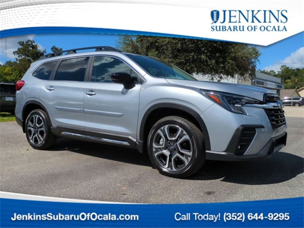 This vehicle comes equipped with 14 Speakers, 3rd row seats: bench, 4-Wheel Disc Brakes, ABS brakes, Air Conditioning, Alloy wheels, AM/FM radio: SiriusXM with 360L, Apple CarPlay & Android Auto, Auto High-beam Headlights, Auto-dimming Rear-View mirror, Automatic temperature control, Brake assist, Bumpers: body-color, Compass, Delay-off headlights, Driver door bin, Driver vanity mirror, Dual front impact airbags, Dual front side impact airbags, Electronic Stability Control, Emergency communication system: MySubaru Safety (3-year free trial), Exterior Parking Camera Rear, Four wheel independent suspension, Front anti-roll bar, Front Bucket Seats, Front Center Armrest, Front dual zone A/C, Front fog lights, Front reading lights, Fully automatic headlights, Garage door transmitter: HomeLink, harman/kardon® Speakers, Heated door mirrors, Heated Front Bucket Seats, Heated front seats, Heated rear seats, Heated steering wheel, Illuminated entry, Knee airbag, Leather Shift Knob, Leather steering wheel, Low tire pressure warning, Memory seat, Navigation System, Occupant sensing airbag, Outside temperature display, Overhead airbag, Overhead console, Panic alarm, Passenger door bin, Passenger vanity mirror, Perforated Leather-Trimmed Upholstery, Power door mirrors, Power driver seat, Power Liftgate, Power moonroof, Power passenger seat, Power steering, Power windows, Radio data system, Radio: Subaru 11.6" Multimedia System w/Navigation, Rear air conditioning, Rear anti-roll bar, Rear reading lights, Rear window defroster, Rear window wiper, Reclining 3rd row seat, Remote keyless entry, Security system, Speed control, Speed-sensing steering, Split folding rear seat, Spoiler, Steering wheel mounted audio controls, Tachometer, Telescoping steering wheel, Tilt steering wheel, Traction control, Trip computer, Turn signal indicator mirrors, Variably intermittent wipers, and Wheels: 20" x 7.5 J Dk Gray Alloy w/Machine Finish . Here at Jenkins Subaru, we won't lose your business over price! We promise to be fast and flexible, meeting you wherever you are in your buying journey, and guaranteeing our best deal during your visit. Enjoy peace of mind with Jenkins Subaru of Ocala's exclusive nationwide lifetime unlimited mileage warranty! (See dealer for details; year and mileage limits apply). Accessories and colors may vary. Quoted prices are subject to change without notice to correct errors or omissions. New vehicle pricing may include applicable manufacturer incentives based on our dealership's location, which may expire anytime and are subject to qualification criteria. Manufacturer incentive data and vehicle features are provided by third parties and believed to be accurate at publication. Pictures are for illustration purposes only. In-person, phone, text, and email offers are not final until both parties have signed documentation. Please contact us by email or phone for details and availability of incentives.