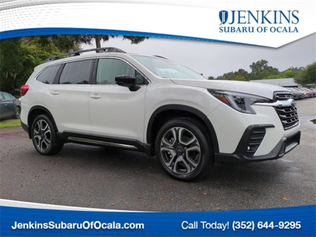 This vehicle comes equipped with 14 Speakers, 3rd row seats: bench, 4-Wheel Disc Brakes, ABS brakes, Air Conditioning, Alloy wheels, AM/FM radio: SiriusXM with 360L, Apple CarPlay & Android Auto, Auto High-beam Headlights, Auto-dimming Rear-View mirror, Automatic temperature control, Brake assist, Bumpers: body-color, Compass, Delay-off headlights, Driver door bin, Driver vanity mirror, Dual front impact airbags, Dual front side impact airbags, Electronic Stability Control, Emergency communication system: MySubaru Safety (3-year free trial), Exterior Parking Camera Rear, Four wheel independent suspension, Front anti-roll bar, Front Bucket Seats, Front Center Armrest, Front dual zone A/C, Front fog lights, Front reading lights, Fully automatic headlights, Garage door transmitter: HomeLink, harman/kardon® Speakers, Heated door mirrors, Heated Front Bucket Seats, Heated front seats, Heated rear seats, Heated steering wheel, Illuminated entry, Knee airbag, Leather Shift Knob, Leather steering wheel, Low tire pressure warning, Memory seat, Navigation System, Occupant sensing airbag, Outside temperature display, Overhead airbag, Overhead console, Panic alarm, Passenger door bin, Passenger vanity mirror, Perforated Leather-Trimmed Upholstery, Power door mirrors, Power driver seat, Power Liftgate, Power moonroof, Power passenger seat, Power steering, Power windows, Radio data system, Radio: Subaru 11.6" Multimedia System w/Navigation, Rear air conditioning, Rear anti-roll bar, Rear reading lights, Rear seat center armrest, Rear window defroster, Rear window wiper, Reclining 3rd row seat, Remote keyless entry, Security system, Speed control, Speed-sensing steering, Split folding rear seat, Spoiler, Steering wheel mounted audio controls, Tachometer, Telescoping steering wheel, Tilt steering wheel, Traction control, Trip computer, Turn signal indicator mirrors, Variably intermittent wipers, and Wheels: 20" x 7.5 J Dk Gray Alloy w/Machine Finish . Here at Jenkins Subaru, we won't lose your business over price! We promise to be fast and flexible, meeting you wherever you are in your buying journey, and guaranteeing our best deal during your visit. Enjoy peace of mind with Jenkins Subaru of Ocala's exclusive nationwide lifetime unlimited mileage warranty! (See dealer for details; year and mileage limits apply). Accessories and colors may vary. Quoted prices are subject to change without notice to correct errors or omissions. New vehicle pricing may include applicable manufacturer incentives based on our dealership's location, which may expire anytime and are subject to qualification criteria. Manufacturer incentive data and vehicle features are provided by third parties and believed to be accurate at publication. Pictures are for illustration purposes only. In-person, phone, text, and email offers are not final until both parties have signed documentation. Please contact us by email or phone for details and availability of incentives.
