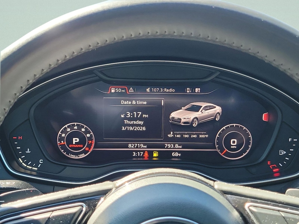 The price does not include tax, tag, license, an electronic filing fee of $449.00**, a private tag agency fee of $199.00**, and a predelivery service charge of $1199.00** **This charge represents costs and profit to the dealer for items such as inspecting, cleaning, and adjusting vehicles, as well as preparing documents related to the sale. * EPA-estimate metric: these are contingent on ideal conditions within a lab. Real-world situations such as carrying passengers or cargo, using climate control, driving style, and ambient temperatures can affect actual metrics. 24/34 City/Highway MPG Clean CARFAX. This 2018 Audi A5 2.0T Prestige in Glacier White features 19" S line Wheel Package (Wheels: 19" x 8.5" 5-Parallel-Spoke Design), Convenience Package (Alarm System w/Motion Sensors, Audi Advanced Key, Driver Seat Memory, Heated Auto-Dimming Power/Memory Exterior Mirrors, and SiriusXM All Access Service), Driver Assistance Package (Adaptive Cruise Control w/Traffic Jam Assist, Audi Active Lane Assist, High-Beam Assistant, and Traffic Sign Recognition), Interior Lighting Package Plus, Navigation Package (12.3" LCD Display Audi Virtual Cockpit and Audi MMI Navigation Plus w/MMI Touch), Prestige (Audi Side Assist, Bang & Olufsen Sound System w/3D Sound, Full Color Head-Up Display, Full LED Headlights, Heated Auto-Dimming Power Ext Mirrors w/Memory, Heated Front Seats, Parking System Plus (Front/Rear Acoustic Sensors), Rear Audi Pre Sense, and Top View Camera System), S line Sport Package (Front Sport Seats, S Line Bumpers, S Line Fender Badges, S line Side Sill Blades, Sport Suspension, and Wheels: 18" x 8.5" 5-Arm-Star Design), 10 Speakers, 4-Wheel Disc Brakes, ABS brakes, Air Conditioning, Alloy wheels, AM/FM radio, Anti-whiplash front head restraints, Audi Guard All-Weather Floor Mats, Audi smartphone interface (Apple CarPlay/Android Auto), Auto-dimming Rear-View mirror, Automatic temperature control, Brake assist, Bumpers: body-color, Compass, Delay-off headlights, Driver door bin, Driver vanity mirror, Dual front impact airbags, Dual front side impact airbags, Electronic Stability Control, Exterior Parking Camera Rear, Four wheel independent suspension, Front anti-roll bar, Front Bucket Seats, Front Center Armrest, Front dual zone A/C, Front fog lights, Front reading lights, Garage door transmitter: HomeLink, Gray Oak Wood Natural Inlays, Heated door mirrors, High intensity discharge headlights: Bi-xenon, Illuminated entry, Knee airbag, Leather Seating Surfaces, Leather Shift Knob, Leather steering wheel, Occupant sensing airbag, Outside temperature display, Overhead airbag, Overhead console, Panic alarm, Passenger door bin, Passenger vanity mirror, Power adjustable front head restraints, Power door mirrors, Power driver seat, Power Liftgate, Power moonroof, Power passenger seat, Power steering, Power windows, Radio data system, Radio: Audi Sound System, Rain sensing wipers, Rear air conditioning, Rear anti-roll bar, Rear reading lights, Rear seat center armrest, Rear window defroster, Remote keyless entry, Speed control, Speed-sensing steering, Speed-Sensitive Wipers, Split folding rear seat, Steering wheel mounted audio controls, Tachometer, Telescoping steering wheel, Tilt steering wheel, Traction control, Trip computer, Turn signal indicator mirrors, USB Cables (DISC), Variably intermittent wipers, Ventilated Front Seats, and Wheels: 18" x 8.5" 10-Spoke-Dynamic-Design . Visit our showroom 24/7 at Jenkinshyundaiofjacksonville or call 904-420-3100. quattro