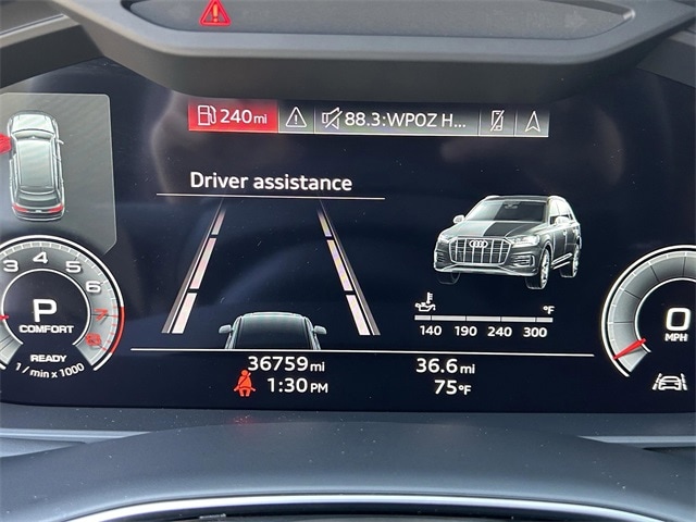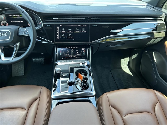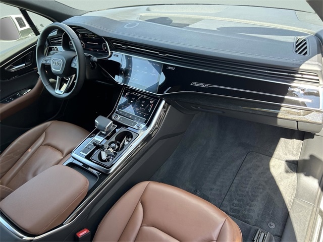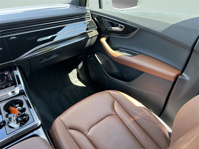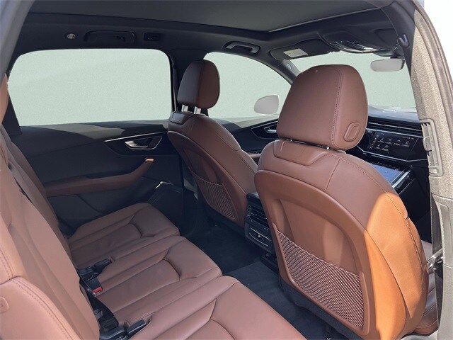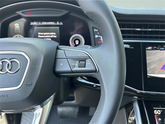 This vehicle comes equipped with 10 Speakers, 3.76 Axle Ratio, 3rd row seats: bench, 4-Wheel Disc Brakes, ABS brakes, Air Conditioning, Alloy wheels, AM/FM radio: SiriusXM w/ 360L, Auto High-beam Headlights, Auto-dimming door mirrors, Auto-dimming Rear-View mirror, Automatic temperature control, Brake assist, Bumpers: body-color, Compass, Delay-off headlights, Driver door bin, Driver vanity mirror, Dual front impact airbags, Dual front side impact airbags, Electronic Stability Control, Emergency communication system: Audi connect CARE, Exterior Parking Camera Rear, Four wheel independent suspension, Front anti-roll bar, Front Bucket Seats, Front Center Armrest, Front dual zone A/C, Front fog lights, Front reading lights, Fully automatic headlights, Garage door transmitter: HomeLink, Genuine wood door panel insert, Heated door mirrors, Heated Front Bucket Seats, Heated front seats, Illuminated entry, Leather Seating Surfaces, Leather Shift Knob, Leather steering wheel, Low tire pressure warning, Memory seat, Navigation system: Audi MMI Navigation plus with Touch Response, Occupant sensing airbag, Outside temperature display, Overhead airbag, Overhead console, Panic alarm, Passenger door bin, Passenger vanity mirror, Power door mirrors, Power driver seat, Power Liftgate, Power moonroof: Panoramic, Power passenger seat, Power steering, Power windows, Radio data system, Radio: Audi Sound System, Rain sensing wipers, Rear air conditioning, Rear anti-roll bar, Rear fog lights, Rear reading lights, Rear seat center armrest, Rear side impact airbag, Rear window defroster, Rear window wiper, Reclining 3rd row seat, Remote keyless entry, Roof rack: rails only, Security system, Speed control, Speed-sensing steering, Split folding rear seat, Spoiler, Steering wheel memory, Steering wheel mounted audio controls, Tachometer, Telescoping steering wheel, Tilt steering wheel, Traction control, Trip computer, Turn signal indicator mirrors, Variably intermittent wipers, and Wheels: 19" 5-Arm-Star Design . Odometer is 4272 miles below market average!
