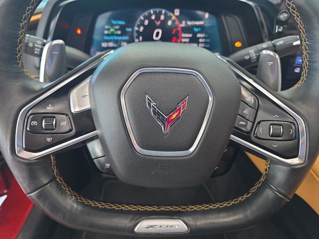 This vehicles comes equipped with Carbon Flash Metallic Painted Outside Mirrors (Carbon Flash Metallic-Painted Outside Mirrors), Memory Driver & Passenger Convenience Package, Preferred Equipment Group 2LZ (2 Cargo Nets, Driver Power Bolster Seat Adjuster, Electrical Theft Deterrent System, HD Front & Rear Vision Cameras, Heated & Vented Driver & Passenger Seats, Heated Steering Wheel, Passenger Power Bolster Seat Adjuster, Performance Data & Video Recorder, Power Driver Lumbar Control Seat Adjuster, Power Passenger Lumbar Control Seat Adjuster, Power-Adjustable Outside Heated Mirrors, Rear Cross Traffic Alert, Side Blind Zone Alert, Universal Home Remote, Vehicle Inclination Theft Deterrent Sensor, Vehicle Interior Movement Theft Deterrent Sensor, and Wireless Charging for Devices), 14 Speakers, 2-Tone Seats, 4-Wheel Disc Brakes, 8-Way Power Driver Seat Adjuster, 8-Way Power Passenger Seat Adjuster, ABS brakes, Adaptive suspension, Air Conditioning, Alloy wheels, AM/FM radio: SiriusXM, Apple CarPlay/Android Auto, Auto-dimming door mirrors, Auto-dimming Rear-View mirror, Automatic temperature control, Black Exhaust Tips, Black Lug Nuts (LPO), Bose Performance Series Sound System w/14 Speakers, Brake assist, Bumpers: body-color, Compass, Convertible HardTop, Convertible roof lining, Convertible Top w/Carbon Flash Nacelles & Roof, Delay-off headlights, Driver door bin, Driver vanity mirror, Dual front impact airbags, Dual front side impact airbags, Edge Red-Painted Calipers, Electronic Stability Control, Emergency communication system: OnStar and Chevrolet connected services capable, Four wheel independent suspension, Front anti-roll bar, Front Bucket Seats, Front Center Armrest, Front dual zone A/C, Front reading lights, Fully automatic headlights, Garage door transmitter, Glass rear window, GT1 Bucket Seats, GT2 Bucket Seats, HD Radio, Heads-Up Display, Heated door mirrors, Heated front seats, Heated steering wheel, Illuminated entry, Integrated roll-over protection, Leather Shift Knob, Leather steering wheel, Low tire pressure warning, Memory seat, Mulan Lthr Seating Surfaces w/Perforated Inserts, Navigation System, Occupant sensing airbag, Outside temperature display, Overhead console, Panic alarm, Passenger door bin, Passenger vanity mirror, Power convertible roof, Power door mirrors, Power driver seat, Power passenger seat, Power steering, Power windows, Premium audio system: Chevrolet Infotainment 3 Premium, Radio data system, Radio: Chevrolet Infotainment 3 Premium System, Rear anti-roll bar, Rear window defroster, Remote keyless entry, Security system, SiriusXM Radio, Speed control, Speed-sensing steering, Spoiler, Sport steering wheel, Steering wheel memory, Steering wheel mounted audio controls, Tachometer, Telescoping steering wheel, Tilt steering wheel, Traction control, Trip computer, Turn signal indicator mirrors, Variably intermittent wipers, Ventilated front seats, Voltmeter, Wheels: 20" x 10" Fr/21" x 13" Rr Black, and Wheels: 20" x 10" Fr/21" x 13" Rr Titanium Satin . Recent Arrival!
