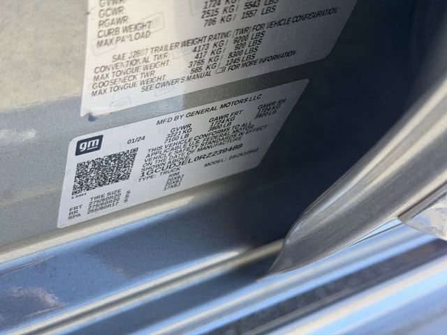 This vehicle comes equipped with High Capacity Suspension Package, Preferred Equipment Group 3LZ (10-Way Power Driver Seat w/Lumbar, 10-Way Power Passenger Seat Adjuster w/Lumbar, 12.3 Multicolor Reconfigurable Digital Display, 120-Volt Bed Mounted Power Outlet, 120-Volt Interior Power Outlet, 2 USB Data Ports, 2nd Row Heated Outboard Seats, Adaptive Cruise Control, Auto-Dimming Inside Rear-View Mirror, Auto-Locking Rear Differential, Bed View Camera, Bluetooth® For Phone, Body-Color Painted Mirror Caps, Chevrolet Connected Access Capable, Chevytec Spray-On Black Bedliner, Chrome Assist Steps, Chrome Recovery Hooks, Color-Keyed Carpeting Floor Covering, Deep-Tinted Glass, Driver Memory, Dual Exhaust w/Polished Outlets, Dual Rear USB Ports (Charge Only), Electric Rear-Window Defogger, Electrical Steering Column Lock, Floor Mounted Center Console, Front Carpeted Floor Mats, Front LED Fog Lamps, Front Rain-Sensing Wipers, HD Surround Vision, Heated Driver & Front Outboard Passenger Seats, Heated Steering Wheel, Hitch Guidance w/Hitch View, In-Vehicle Trailering System App, Integrated Trailer Brake Controller, Keyless Open & Start, LED Cargo Area Lighting, OnStar & Chevrolet Connected Services Capable, Outside Heated Power-Adjustable Mirrors, Perimeter Lighting, Power Front Passenger Windows w/Express Up/Down, Power Front Windows w/Driver Express Up/Down, Power Rear Windows w/Express Down, Power Sliding Rear Window w/Rear Defogger, Power Tailgate, Power Tilt & Telescoping Steering Column, Rear Carpeted Floor Mats, Rear Cross Traffic Braking, Rear Pedestrian Alert, Rear Wheelhouse Liners, Remote Vehicle Starter System, Safety Alert Seat, SiriusXM w/360L, Standard Tailgate, Steering Wheel Audio Controls, Theft Deterrent System (Unauthorized Entry), Trailer Camera Provisions, Trailer Side Blind Zone Alert, Ultrasonic Front & Rear Park Assist, Universal Home Remote, Ventilated Driver & Front Passenger Seats, Wi-Fi Hot Spot Capable, and Wrapped Steering Wheel), Technology Package (15 Diagonal Multicolor Head-Up Display and Rear Camera Mirror), Trailering Package (Hitch Guidance), Up-Level Rear Seat w/Storage Package, Z71 Off-Road Package (Heavy-Duty Air Filter, Hill Descent Control, and Off-Road Suspension), 10-Speed Automatic, 4WD, Jet Black Leather, 170 Amp Alternator, 3.23 Rear Axle Ratio, 4-Wheel Disc Brakes, 7 Speakers, ABS brakes, Air Conditioning, All-Weather Floor Liner (LPO) (AAK), Alloy wheels, AM/FM radio: SiriusXM with 360L, Auto High-beam Headlights, Auto-dimming door mirrors, Auto-dimming Rear-View mirror, Automatic temperature control, Bodyside moldings, Brake assist, Bumpers: body-color, Compass, Delay-off headlights, Driver door bin, Driver vanity mirror, Dual Active Exhaust, Dual front impact airbags, Dual front side impact airbags, Electronic Stability Control, Electronic Transmission Range Selector Shifter, Enhanced Automatic Emergency Braking, Following Distance Indicator, Forward Collision Alert, Front anti-roll bar, Front Bucket Seats, Front Center Armrest, Front dual zone A/C, Front fog lights, Front Pedestrian Braking, Front reading lights, Front wheel independent suspension, Fully automatic headlights, Garage door transmitter, Genuine wood console insert, Genuine wood dashboard insert, Genuine wood door panel insert, Heated door mirrors, Heated front seats, Heated rear seats, Heated steering wheel, Illuminated entry, IntelliBeam Automatic High Beam On/Off, Lane Keep Assist w/Lane Departure Warning, Low tire pressure warning, Memory seat, Occupant sensing airbag, Outside temperature display, Overhead airbag, Overhead console, Panic alarm, Passenger door bin, Passenger vanity mirror, Perforated Leather Seat Trim, Power door mirrors, Power driver seat, Power passenger seat, Power steering, Power Sunroof, Power windows, Premium audio system: Chevrolet Infotainment 3 Premium, Premium Bose 7-Speaker Sound System, Radio data system, Radio: Chevrolet Infotainment 3 Pre