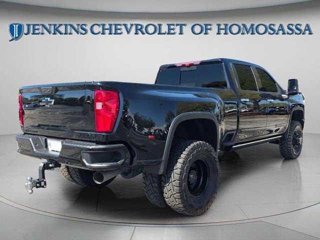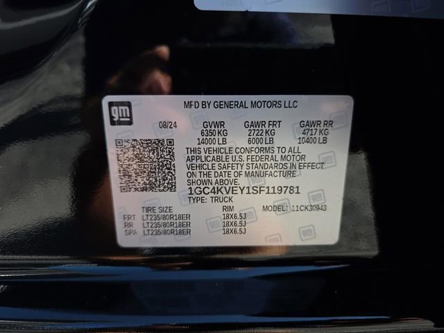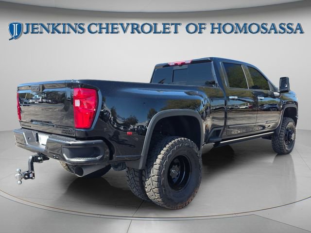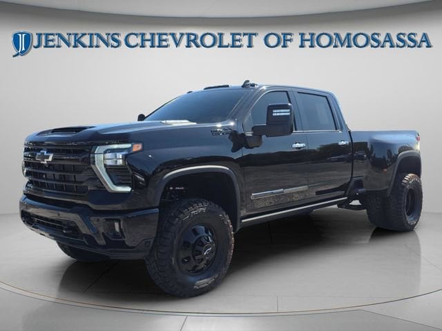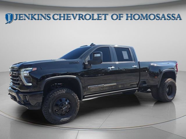 This vehicle comes equipped with Dark Essentials Package (LPO) (Black Name Plates (LPO) and Front Black Bowtie Emblem (LPO)), Gooseneck/5th Wheel Prep Package (Chevytec Spray-On Black Bedliner), High Country Premium Package (Power Sunroof), Preferred Equipment Group 3LZ (120-Volt Bed Mounted Power Outlet, 120-Volt Interior Power Outlet, 170 Amp Alternator, 6 Rectangular Chromed Tubular Assist Steps, Auto-Dimming Inside Rear-View Mirror, Bed View Camera w/2 Trailer Camera Provisions, Bluetooth® For Phone, Chevrolet Connected Access Capable, Chrome Door Handles, Chrome Mirror Caps, Color-Keyed Carpeting Floor Covering, Compass Located In Instrument Cluster, Deep-Tinted Glass, Electric Rear-Window Defogger, Front Carpeted Floor Mats, Front Chrome Recovery Hooks, Front LED Fog Lamps, Front Rain-Sensing Wipers, Heated 2nd Row Outboard Seats, Heated Steering Wheel, Hitch Guidance w/Hitch View, In-Vehicle Trailering App System, Keyless Open & Start, LED Cargo Area Lighting, Manual Tilt-Wheel/Telescoping Steering Column, OnStar Services Capable, Polished Exhaust Tip, Power Door Locks, Power Front Windows w/Driver Express Up/Down, Power Front Windows w/Passenger Express Up/Down, Power Rear Windows w/Express Down, Power Sliding Rear Window w/Defogger, Power Tailgate, Push Button Start, Rear Carpeted Floor Mats, Rear Cross Traffic Alert, Remote Vehicle Starter System, SiriusXM w/360L Trial Subscription, Standard Tailgate, Steering Wheel Audio Controls, Trailer Camera Provisions, Trailer Side Blind Zone Alert, Ultrasonic Front & Rear Park Assist, Unauthorized Entry Theft-Deterrent System, Universal Home Remote, Wi-Fi Hotspot Capable, Wireless Charging, and Wrapped Steering Wheel), Suspension Package, Technology Package (Auto-Dimming Inside Rearview Mirror w/Camera and Multicolor 15 Diagonal Head-Up Display), Up-Level Rear Seat w/Storage Package, 10-Speed Automatic, 4WD, Jet Black Leather, 10-Way Power Driver Seat Adjuster w/Lumbar, 10-Way Power Passenger Seat Adjuster w/Lumbar, 220 Amp Alternator, 4-Wheel Disc Brakes, 7 Speakers, ABS brakes, Air Conditioning, All-Weather Floor Liners (LPO), Alloy wheels, AM/FM radio: SiriusXM with 360L, Apple CarPlay/Android Auto, Auto High-beam Headlights, Auto-dimming door mirrors, Auto-dimming Rear-View mirror, Automatic temperature control, Bodyside moldings, Bose Premium 7-Speaker Sound System, Brake assist, Bumpers: body-color, Compass, Delay-off headlights, Driver door bin, Driver Memory, Driver vanity mirror, Dual front impact airbags, Dual front side impact airbags, Durabed Pickup Bed, Electronic Stability Control, Engine Block Heater, Exhaust Brake, EZ Lift Power Lock & Release Tailgate, Floor-Mounted Center Console, Front anti-roll bar, Front Bucket Seats, Front Center Armrest, Front dual zone A/C, Front fog lights, Front reading lights, Front wheel independent suspension, Fully automatic headlights, Garage door transmitter, Genuine wood console insert, Genuine wood dashboard insert, Genuine wood door panel insert, Heated door mirrors, Heated Driver & Front Outboard Passenger Seats, Heated front seats, Heated rear seats, Heated steering wheel, Heavy-Duty 80 Amp-Hr Battery, Illuminated entry, Low tire pressure warning, Memory seat, Multi-Flex Tailgate, Occupant sensing airbag, Outside temperature display, Overhead airbag, Overhead console, Panic alarm, Passenger door bin, Passenger vanity mirror, Perforated Leather Seating Surfaces, Power door mirrors, Power driver seat, Power passenger seat, Power steering, Power windows, Power-Retractable Assist Steps, Premium audio system: Chevrolet Infotainment 3 Premium, Radio: Chevrolet Infotainment 3 Premium System, Rain sensing wipers, Rear reading lights, Rear seat center armrest, Rear step bumper, Rear window defroster, Remote keyless entry, Security system, Speed control, Speed-sensing steering, Split folding rear seat, Steering wheel mounted audio controls, Tachometer, Telescoping steering wheel, Tilt