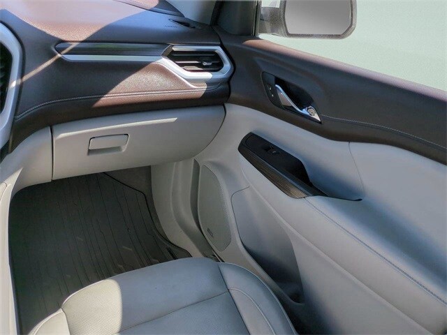This vehicles comes equipped with Interior Protection Package (LPO) (1st & 2nd Row All Weather Floor Mats (LPO), 3rd Row All Weather Floor Mats (LPO), and All Weather Cargo Mat (LPO)), Preferred Equipment Group 4SB, FWD, Cocoa/ Light Ash Gray Leather, 2-Position Memory Driver Seat, 3.16 Axle Ratio, 3rd row seats: split-bench, 4-Wheel Disc Brakes, 6-Passenger (2-2-2 Seating Configuration), 8 Speakers, 8-Way Power Front Passenger Seat Adjuster, ABS brakes, Air Conditioning, Alloy wheels, AM/FM radio: SiriusXM, Apple CarPlay/Android Auto, Auto High-beam Headlights, Auto-dimming door mirrors, Auto-dimming Rear-View mirror, Automatic temperature control, Bose Premium 8-Speaker System, Brake assist, Bumpers: body-color, Compass, Delay-off headlights, Driver door bin, Driver vanity mirror, Dual front impact airbags, Dual front side impact airbags, Electronic Stability Control, Emergency communication system: OnStar and GMC connected services capable, Exterior Parking Camera Rear, Four wheel independent suspension, Front anti-roll bar, Front Bucket Seats, Front Center Armrest, Front dual zone A/C, Front fog lights, Front reading lights, Fully automatic headlights, Garage door transmitter, Heated door mirrors, Heated Driver & Front Passenger Seats, Heated front seats, Heated rear seats, Illuminated entry, Knee airbag, Low tire pressure warning, Memory seat, Occupant sensing airbag, Outside temperature display, Overhead airbag, Overhead console, Panic alarm, Passenger door bin, Passenger vanity mirror, Perforated Leather-Appointed Seat Trim, Power door mirrors, Power Driver Lumbar Control Seat Adjuster, Power driver seat, Power Liftgate, Power Passenger Lumbar Control Seat Adjuster, Power passenger seat, Power steering, Power windows, Premium audio system: GMC Infotainment System, Radio data system, Radio: AM/FM w/8" Diagonal Color Touch Screen, Radio: AM/FM w/8" Diagonal Color Touch Screen & Nav, Rear air conditioning, Rear anti-roll bar, Rear reading lights, Rear window defroster, Rear window wiper, Remote keyless entry, Roof rack: rails only, Security system, SiriusXM Radio, Speed control, Speed-sensing steering, Spoiler, Steering wheel mounted audio controls, Tachometer, Telescoping steering wheel, Tilt steering wheel, Traction control, Trip computer, Variably intermittent wipers, Voltmeter, and Wheels: 20" x 8.0" Bright Aluminum (4) . Odometer is 21336 miles below market average!