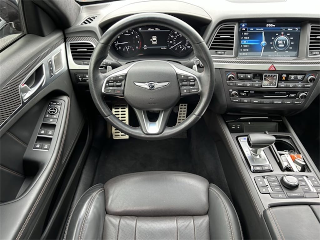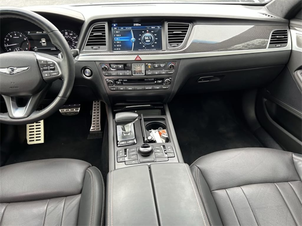 This vehicle comes equipped with 17 Speakers, 4-Wheel Disc Brakes, ABS brakes, Adaptive suspension, Air Conditioning, Alloy wheels, AM/FM radio: SiriusXM, Android Auto & Apple CarPlay, Anti-whiplash front head restraints, Auto High-beam Headlights, Auto tilt-away steering wheel, Auto-dimming door mirrors, Auto-dimming Rear-View mirror, Auto-leveling suspension, Automatic temperature control, Brake assist, Bumpers: body-color, CD player, Compass, Delay-off headlights, Driver door bin, Driver vanity mirror, Dual front impact airbags, Dual front side impact airbags, DVD-Audio, Electronic Stability Control, Emergency communication system: Genesis Connected Services, Four wheel independent suspension, Front anti-roll bar, Front Bucket Seats, Front Center Armrest, Front dual zone A/C, Front fog lights, Front reading lights, Fully automatic headlights, Garage door transmitter: HomeLink, Heads-Up Display, Heated & Ventilated Front Sport Seats, Heated door mirrors, Heated front seats, Heated rear seats, Illuminated entry, Knee airbag, Leather Shift Knob, Leather steering wheel, Low tire pressure warning, Memory seat, Nappa Leather Seating Surfaces, Navigation System, Occupant sensing airbag, Outside temperature display, Overhead airbag, Overhead console, Panic alarm, Passenger door bin, Passenger vanity mirror, Power door mirrors, Power driver seat, Power moonroof, Power passenger seat, Power steering, Power windows, Radio data system, Radio: AM/FM/HD/SiriusXM/CD/DVD/MP3 Audio System, Rain sensing wipers, Rear anti-roll bar, Rear reading lights, Rear seat center armrest, Rear side impact airbag, Rear Window Blind, Rear window defroster, Remote keyless entry, Security system, Speed control, Speed-sensing steering, Speed-Sensitive Wipers, Sport steering wheel, Steering wheel memory, Steering wheel mounted audio controls, Tachometer, Telescoping steering wheel, Tilt steering wheel, Traction control, Trip computer, Turn signal indicator mirrors, Variably intermittent wipers, Ventilated front seats, and Wheels: 19" x 8.5J Fr & 19" x 9.0J Rr Sport Alloy . Odometer is 67684 miles below market average!