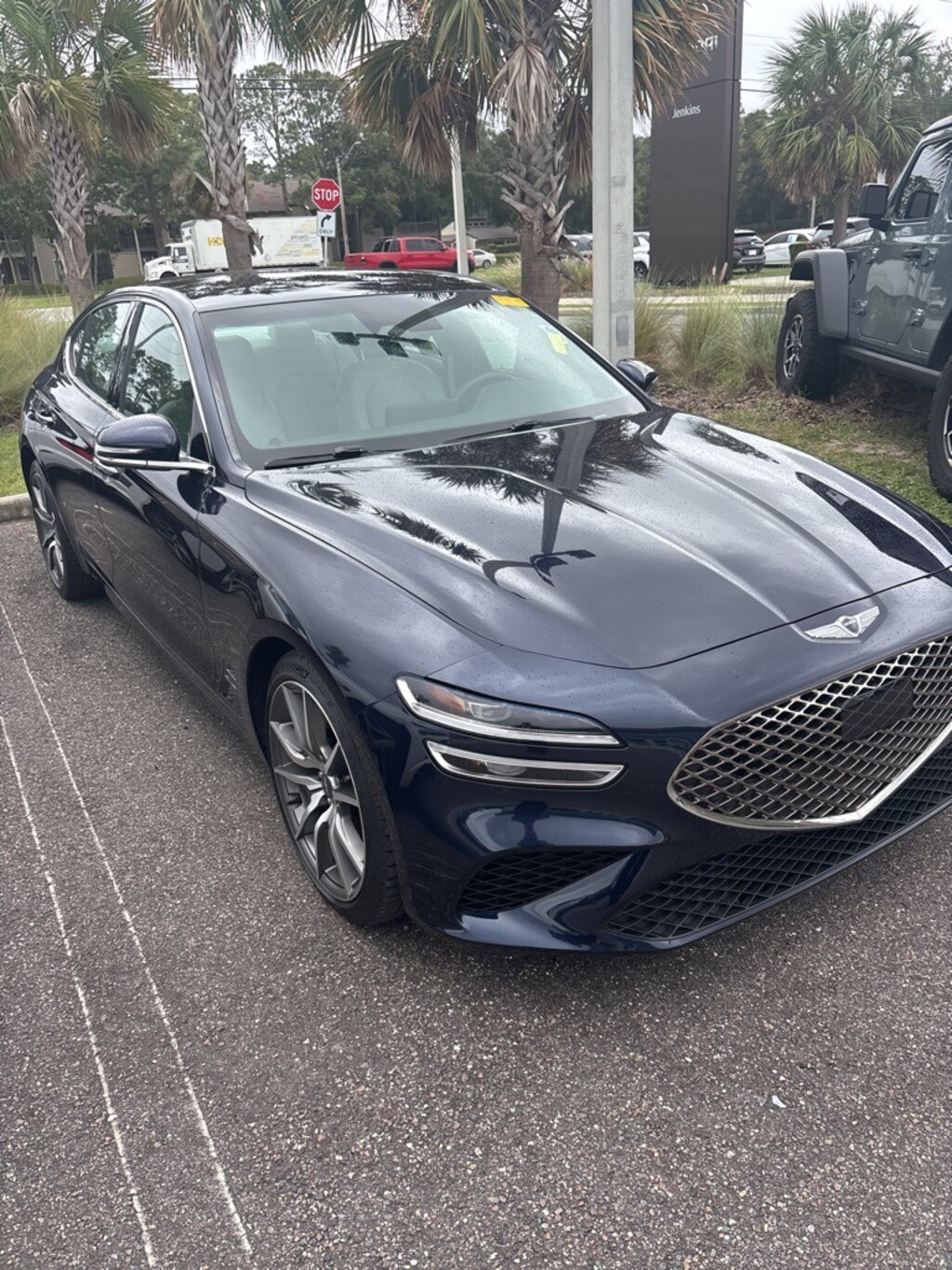 The price does not include tax, tag, license, an electronic filing fee of $449.00**, a private tag agency fee of $199.00**, and a predelivery service charge of $1199.00** **This charge represents costs and profit to the dealer for items such as inspecting, cleaning, and adjusting vehicles, as well as preparing documents related to the sale. * EPA-estimate metric: these are contingent on ideal conditions within a lab. Real-world situations such as carrying passengers or cargo, using climate control, driving style, and ambient temperatures can affect actual metrics. 21/31 City/Highway MPG Capri Blue 2023 Genesis G70 2.0T RWD 8-Speed Automatic with SHIFTRONIC I4
