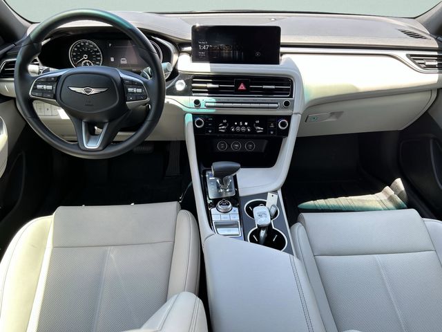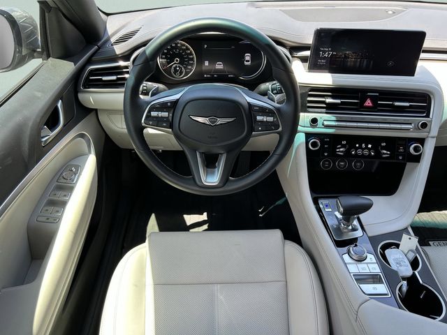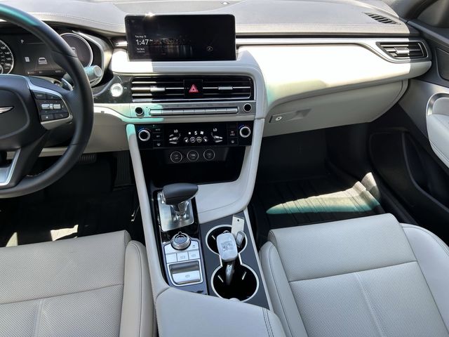 This vehicle comes equipped with Option Group 01, 4-Wheel Disc Brakes, 6 Speakers, ABS brakes, Air Conditioning, Alloy wheels, AM/FM radio: SiriusXM, Android Auto & Apple CarPlay, Anti-whiplash front head restraints, Auto High-beam Headlights, Auto-dimming Rear-View mirror, Automatic temperature control, Brake assist, Bumper Applique, Bumpers: body-color, Delay-off headlights, Driver door bin, Driver vanity mirror, Dual front impact airbags, Dual front side impact airbags, Electronic Stability Control, Emergency communication system: Genesis Connected Services, Exterior Parking Camera Rear, First Aid Kit, Four wheel independent suspension, Front anti-roll bar, Front Bucket Seats, Front Center Armrest, Front dual zone A/C, Front reading lights, Fully automatic headlights, Garage door transmitter: HomeLink, Heated door mirrors, Heated front seats, Heated Multi-Adjustable Front Bucket Seats, Illuminated entry, Knee airbag, Leather steering wheel, Leatherette Seating Surfaces, Low tire pressure warning, Navigation System, Occupant sensing airbag, Outside temperature display, Overhead airbag, Overhead console, Panic alarm, Passenger door bin, Passenger vanity mirror, Power door mirrors, Power driver seat, Power passenger seat, Power steering, Power windows, Radio: AM/FM/SiriusXM/HD Audio System, Rear anti-roll bar, Rear reading lights, Rear seat center armrest, Rear side impact airbag, Rear window defroster, Remote keyless entry, Reversible Cargo Tray, Roadside Assistance, Security system, Speed control, Speed-Sensitive Wipers, Split folding rear seat, Steering wheel mounted audio controls, Tachometer, Telescoping steering wheel, Traction control, Trip computer, Turn signal indicator mirrors, Variably intermittent wipers, Wheel Locks, and Wheels: 19" x 8.0J Fr & 19" x 8.5J Rr Alloy . Odometer is 3281 miles below market average! 21/29 City/Highway MPG