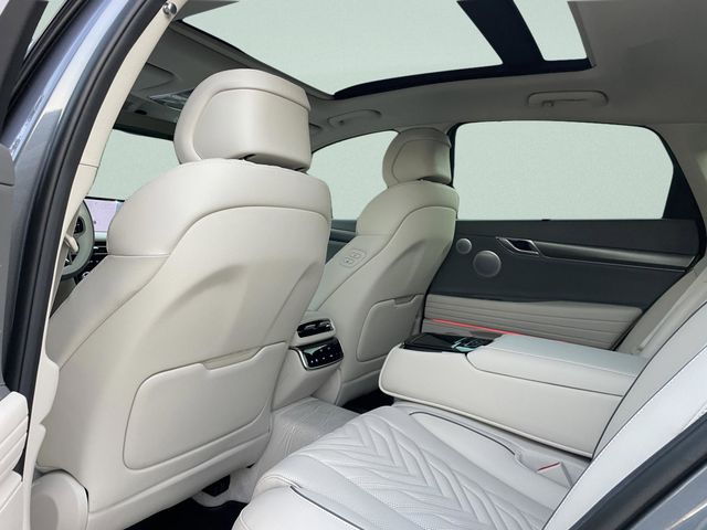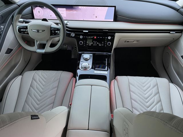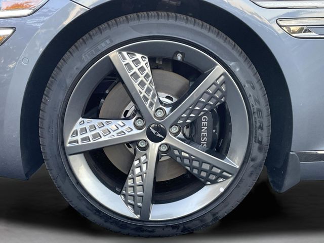 This vehicle comes equipped with Option Group 01, 18 Speakers, 4-Wheel Disc Brakes, ABS brakes, Adaptive suspension, Air Conditioning, All-Season Fitted Liners, Alloy wheels, AM/FM radio: SiriusXM, Android Auto & Apple CarPlay, Anti-whiplash front head restraints, Auto High-beam Headlights, Auto tilt-away steering wheel, Auto-dimming door mirrors, Auto-dimming Rear-View mirror, Automatic temperature control, Bumpers: body-color, Compass, Delay-off headlights, Driver door bin, Driver vanity mirror, Dual front impact airbags, Dual front side impact airbags, Electronic Stability Control, Emergency communication system: Genesis Connected Services, Exterior Parking Camera Rear, First Aid Kit, Four wheel independent suspension, Front anti-roll bar, Front Bucket Seats, Front Center Armrest, Front dual zone A/C, Front reading lights, Fully automatic headlights, Garage door transmitter: HomeLink, Heated and Ventilated Front Bucket Seats, Heated door mirrors, Heated front seats, Heated rear seats, Heated steering wheel, Illuminated entry, Knee airbag, Leather Seating Surfaces, Leather steering wheel, Low tire pressure warning, Memory seat, Navigation System, NFC Key Card, Occupant sensing airbag, Outside temperature display, Overhead airbag, Overhead console, Panic alarm, Passenger door bin, Passenger vanity mirror, Power door mirrors, Power driver seat, Power moonroof, Power passenger seat, Power steering, Power windows, Radio data system, Radio: AM/FM/HD Bang & Olufsen Premium Audio System, Rain sensing wipers, Rear air conditioning, Rear anti-roll bar, Rear reading lights, Rear seat center armrest, Rear side impact airbag, Rear Window Blind, Rear window defroster, Remote keyless entry, Security system, Speed control, Speed-sensing steering, Speed-Sensitive Wipers, Steering wheel memory, Steering wheel mounted audio controls, Tachometer, Telescoping steering wheel, Tilt steering wheel, Traction control, Trip computer, Turn signal indicator mirrors, Variably intermittent wipers, Ventilated front seats, and Wheels: 20" x 8.5J Front and 20" x 9.5J Rear Sport Alloy . Recent Arrival! Odometer is 1329 miles below market average! 20/29 City/Highway MPG