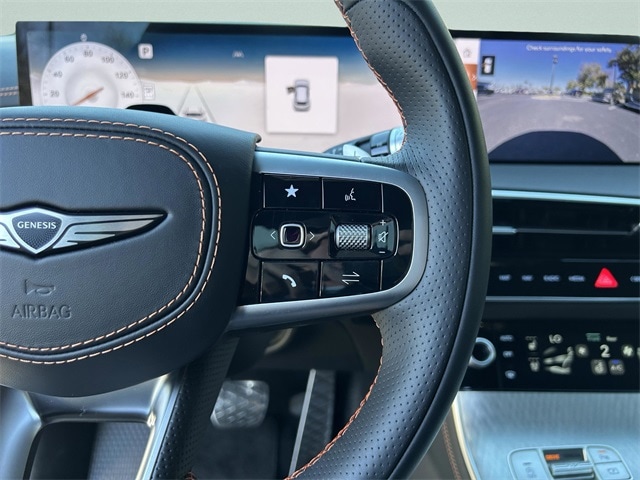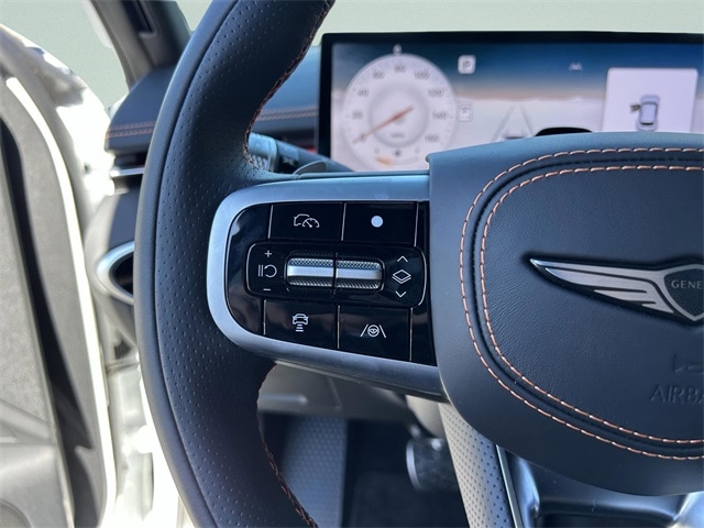 This vehicle comes equipped with Option Group 01, 16 Speakers, 4-Wheel Disc Brakes, ABS brakes, Air Conditioning, All Season Fitted Liners, Alloy wheels, AM/FM radio: SiriusXM, Android Auto & Apple CarPlay, Anti-whiplash front head restraints, Auto High-beam Headlights, Auto-dimming door mirrors, Auto-dimming Rear-View mirror, Automatic temperature control, Brake assist, Bumpers: body-color, Cargo Cover, Cargo Net, Cargo Tray, Delay-off headlights, Driver door bin, Driver vanity mirror, Dual front impact airbags, Dual front side impact airbags, Electronic Stability Control, Emergency communication system: Genesis Connected Services, Exterior Parking Camera Rear, First Aid Kit, Four wheel independent suspension, Front anti-roll bar, Front Bucket Seats, Front Center Armrest w/Storage, Front dual zone A/C, Front reading lights, Fully automatic headlights, Garage door transmitter: HomeLink, Heated and Ventilated Front Bucket Seats, Heated door mirrors, Heated front seats, Heated steering wheel, Illuminated entry, Knee airbag, Leather steering wheel, Low tire pressure warning, Memory seat, Navigation System, NFC Key Card, Occupant sensing airbag, Outside temperature display, Overhead airbag, Overhead console, Panic alarm, Passenger door bin, Passenger vanity mirror, Power door mirrors, Power driver seat, Power Liftgate, Power moonroof, Power passenger seat, Power steering, Power windows, Radio: 14.5" Navigation System with AM/FM/HD, Rain sensing wipers, Rear air conditioning, Rear anti-roll bar, Rear reading lights, Rear seat center armrest, Rear window defroster, Rear window wiper, Remote keyless entry, Security system, Speed control, Speed-sensing steering, Speed-Sensitive Wipers, Split folding rear seat, Spoiler, Sport Leather Seating Surfaces, Steering wheel memory, Steering wheel mounted audio controls, Tachometer, Telescoping steering wheel, Tilt steering wheel, Traction control, Trip computer, Turn signal indicator mirrors, Variably intermittent wipers, Ventilated front seats, and Wheels: 21" Dark Sputtering Alloy . Odometer is 3858 miles below market average! 20/26 City/Highway MPG