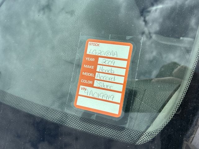 The price does not include tax, tag, license, an electronic filing fee of $449.00**, a private tag agency fee of $199.00**, and a predelivery service charge of $1199.00** **This charge represents costs and profit to the dealer for items such as inspecting, cleaning, and adjusting vehicles, as well as preparing documents related to the sale.* EPA-estimate metric: these are contingent on ideal conditions within a lab. Real-world situations such as carrying passengers or cargo, using climate control, driving style, and ambient temperatures can affect actual metrics. 21/30 City/Highway MPG Cloth. 2009 Honda Accord LX-P 2.4 FWD 5-Speed Automatic with Overdrive 2.4L I4 DOHC i-VTEC 16V