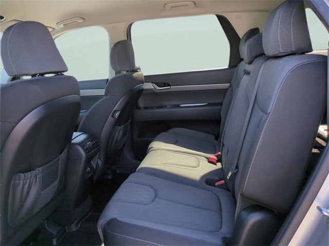 This vehicles comes equipped with Option Group 01, 3.648 Axle Ratio, 3rd row seats: split-bench, 4-Wheel Disc Brakes, 6 Speakers, ABS brakes, Air Conditioning, Alloy wheels, AM/FM radio, Apple CarPlay & Android Auto, Auto High-beam Headlights, Brake assist, Bumpers: body-color, Cargo Cover/Screen, Cargo Net, Cargo Tray, Carpeted Floor Mats, Cloth Seat Trim, Delay-off headlights, Driver door bin, Driver vanity mirror, Dual front impact airbags, Dual front side impact airbags, Electronic Stability Control, Four wheel independent suspension, Front anti-roll bar, Front Bucket Seats, Front Center Armrest, Front reading lights, Fully automatic headlights, Heated door mirrors, Illuminated entry, Knee airbag, Low tire pressure warning, Mudguards, Occupant sensing airbag, Outside temperature display, Overhead airbag, Overhead console, Panic alarm, Passenger door bin, Passenger vanity mirror, Power door mirrors, Power steering, Power windows, Radio data system, Radio: AM/FM/MP3 Display Audio, Rear air conditioning, Rear anti-roll bar, Rear reading lights, Rear seat center armrest, Rear window defroster, Rear window wiper, Reclining 3rd row seat, Remote keyless entry, Security system, Speed control, Speed-sensing steering, Split folding rear seat, Spoiler, Steering wheel mounted audio controls, Tachometer, Telescoping steering wheel, Tilt steering wheel, Traction control, Trip computer, Variably intermittent wipers, and Wheels: 18" x 7.5J Painted Finish Alloy . 19/26 City/Highway MPG