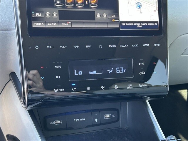 This vehicle comes equipped with Option Group 01, 3.648 Axle Ratio, 4-Wheel Disc Brakes, 8 Speakers, ABS brakes, Air Conditioning, Alloy wheels, AM/FM radio: SiriusXM, Apple CarPlay & Android Auto, Auto High-beam Headlights, Auto-dimming Rear-View mirror, Automatic temperature control, Brake assist, Bumpers: body-color, Cargo Net, Cargo Tray, Carpeted Floor Mats, Delay-off headlights, Driver door bin, Driver vanity mirror, Dual front impact airbags, Dual front side impact airbags, Electronic Stability Control, Emergency communication system: Blue Link Connected Car Service (3-year complimentary subscription), Four wheel independent suspension, Front and Rear Mudguards, Front anti-roll bar, Front Bucket Seats, Front Center Armrest, Front dual zone A/C, Front reading lights, Fully automatic headlights, Garage door transmitter: HomeLink, Heated & Ventilated Front Bucket Seats, Heated door mirrors, Heated front seats, Heated rear seats, Heated steering wheel, Illuminated entry, Leather Seat Trim, Low tire pressure warning, Memory seat, Navigation System, Occupant sensing airbag, Outside temperature display, Overhead airbag, Overhead console, Panic alarm, Passenger door bin, Passenger vanity mirror, Power door mirrors, Power driver seat, Power Liftgate, Power moonroof, Power passenger seat, Power steering, Power windows, Radio data system, Radio: Bose Premium w/AM/FM/HD/SiriusXM Audio System, Rain sensing wipers, Rear anti-roll bar, Rear reading lights, Rear seat center armrest, Rear window defroster, Rear window wiper, Remote keyless entry, Roof Rack Cross Rails, Roof rack: rails only, Security system, Speed control, Split folding rear seat, Spoiler, Steering wheel mounted audio controls, Tachometer, Telescoping steering wheel, Tilt steering wheel, Traction control, Trip computer, Turn signal indicator mirrors, Variably intermittent wipers, Ventilated front seats, and Wheels: 19" x 7.5J" Machine-Face Finish Alloy . 26/33 City/Highway MPG