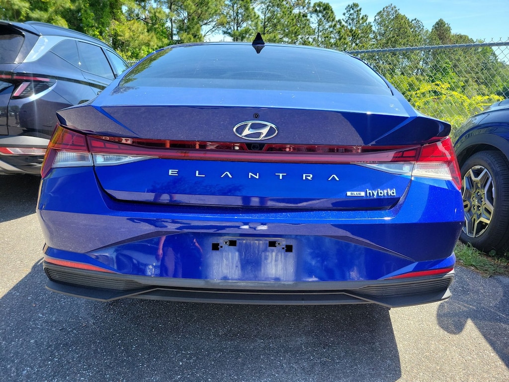 The price does not include tax, tag, license, an electronic filing fee of $449.00**, a private tag agency fee of $199.00**, and a predelivery service charge of $1199.00** **This charge represents costs and profit to the dealer for items such as inspecting, cleaning, and adjusting vehicles, as well as preparing documents related to the sale. * EPA-estimate metric: these are contingent on ideal conditions within a lab. Real-world situations such as carrying passengers or cargo, using climate control, driving style, and ambient temperatures can affect actual metrics. 53/56 City/Highway MPG Clean CARFAX. This 2023 Hyundai Elantra Hybrid Blue in Intense Blue features Option Group 01, 16" x 6.5J Alloy Wheels, 4-Wheel Disc Brakes, 6 Speakers, ABS brakes, Air Conditioning, Alloy wheels, AM/FM radio: SiriusXM, Apple CarPlay & Android Auto, Auto High-beam Headlights, Automatic temperature control, Brake assist, Bumpers: body-color, Cloth Seat Trim, Delay-off headlights, Driver door bin, Driver vanity mirror, Dual front impact airbags, Dual front side impact airbags, Electronic Stability Control, Emergency communication system: Blue Link Connected Car Service (3-year complimentary subscription), Exterior Parking Camera Rear, Front anti-roll bar, Front Bucket Seats, Front Center Armrest, Front dual zone A/C, Front reading lights, Front wheel independent suspension, Fully automatic headlights, Heated door mirrors, Heated Front Bucket Seats, Heated front seats, Illuminated entry, Low tire pressure warning, Occupant sensing airbag, Outside temperature display, Overhead airbag, Overhead console, Panic alarm, Passenger door bin, Passenger vanity mirror, Power door mirrors, Power steering, Power windows, Radio: AM/FM/HD/SiriusXM Display Audio, Rear window defroster, Remote keyless entry, Security system, Speed control, Speed-sensing steering, Steering wheel mounted audio controls, Tachometer, Telescoping steering wheel, Tilt steering wheel, Traction control, Trip computer, and Variably intermittent wipers . Visit our showroom 24/7 at Jenkinshyundaiofjacksonville or call 904-420-3100. FWD