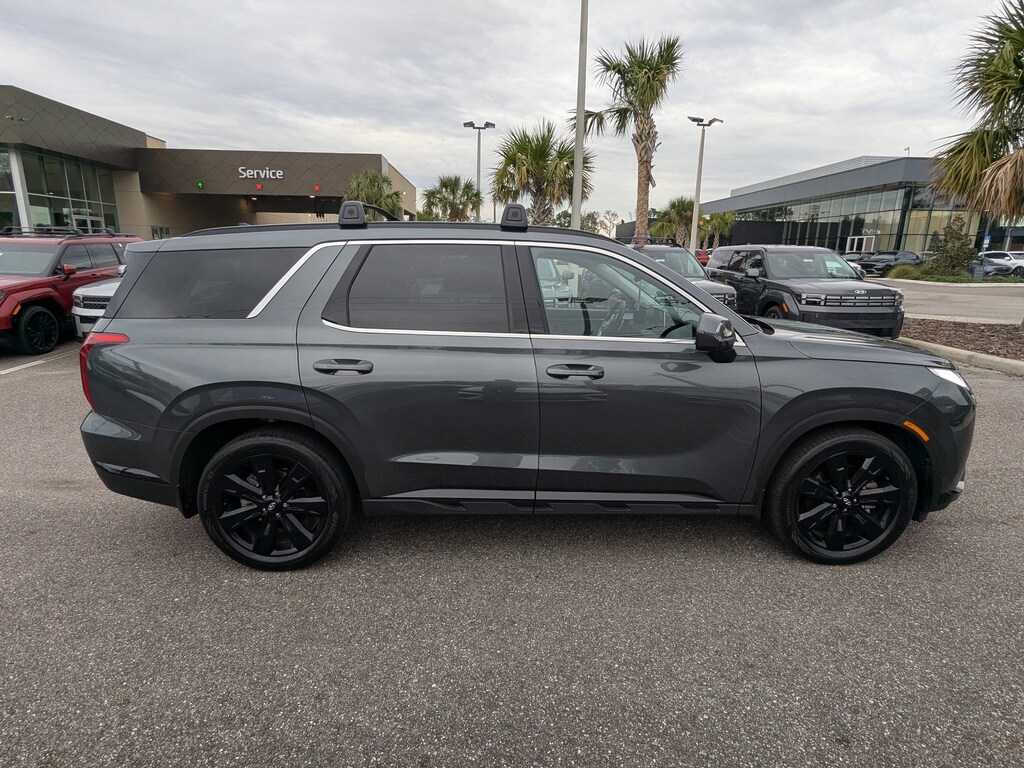 The price does not include tax, tag, license, an electronic filing fee of $449.00**, a private tag agency fee of $199.00**, and a predelivery service charge of $1199.00** **This charge represents costs and profit to the dealer for items such as inspecting, cleaning, and adjusting vehicles, as well as preparing documents related to the sale. * EPA-estimate metric: these are contingent on ideal conditions within a lab. Real-world situations such as carrying passengers or cargo, using climate control, driving style, and ambient temperatures can affect actual metrics. 19/27 City/Highway MPG This 2023 Hyundai Palisade XRT in Steel Graphite features Option Group 01, 3.510 Axle Ratio, 3rd row seats: split-bench, 4-Wheel Disc Brakes, 6 Speakers, ABS brakes, Air Conditioning, Alloy wheels, AM/FM radio: SiriusXM, Apple CarPlay & Android Auto, Auto High-beam Headlights, Auto-dimming door mirrors, Auto-dimming Rear-View mirror, Auto-leveling suspension, Automatic temperature control, Brake assist, Bumpers: body-color, Cargo Cover/Screen, Carpeted Floor Mats, Delay-off headlights, Driver door bin, Driver vanity mirror, Dual front impact airbags, Dual front side impact airbags, Electronic Stability Control, Emergency communication system: Blue Link Connected Car Service (3-year complimentary subscription), Exterior Parking Camera Rear, First Aid Kit, Four wheel independent suspension, Front anti-roll bar, Front Bucket Seats, Front Center Armrest, Front dual zone A/C, Front reading lights, Fully automatic headlights, Garage door transmitter: HomeLink, H-Tex Leatherette Seat Trim, Heated door mirrors, Heated Front Bucket Seats, Heated front seats, Illuminated entry, Knee airbag, Low tire pressure warning, Navigation System, Occupant sensing airbag, Outside temperature display, Overhead airbag, Overhead console, Panic alarm, Passenger door bin, Passenger vanity mirror, Power door mirrors, Power driver seat, Power Liftgate, Power moonroof, Power passenger seat, Power steering, Power windows, Radio data system, Radio: AM/FM/MP3 Audio System, Rear air conditioning, Rear anti-roll bar, Rear audio controls, Rear Bumper Applique, Rear reading lights, Rear side impact airbag, Rear window defroster, Rear window wiper, Reclining 3rd row seat, Remote keyless entry, Security system, Speed control, Speed-sensing steering, Splash Trim, Split folding rear seat, Spoiler, Steering wheel mounted audio controls, Tachometer, Telescoping steering wheel, Tilt steering wheel, Traction control, Trip computer, Turn signal indicator mirrors, Variably intermittent wipers, and Wheels: 20" x 7.5J Dark Alloy w/Rugged Styling . Visit our showroom 24/7 at Jenkinshyundaiofjacksonville or call 904-420-3100. FWD