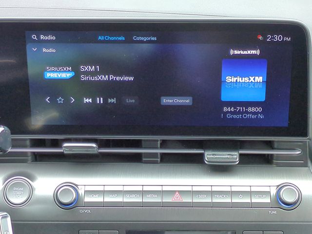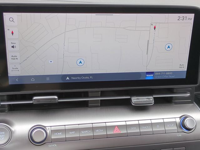 This vehicle comes equipped with Convenience Package (12.3" LCD Cluster, Auto-Dimming Rear-View Mirror, Column-Mounted Shift-By-Wire, FCA w/Junction Turning, Direct Oncoming, Heated Front Seats, Highway Driving Assist 1 (HDA 1), Hyundai Digital Key 2 Touch, LED Interior Lighting, Navigation-Based Smart Cruise Control (NSCC), Option Group 02, Paddle Shifters, Power Windows w/Front Auto-Down/Up, Radio: AM/FM/HD Radio/SiriusXM w/Navigation, Wi-Fi Hotspot, and Wireless Device Charging), 4-Wheel Disc Brakes, 6 Speakers, 6.052 Axle Ratio, ABS brakes, Air Conditioning, Alloy wheels, AM/FM radio: SiriusXM, Apple CarPlay & Android Auto, Auto High-beam Headlights, Automatic temperature control, Brake assist, Bumpers: body-color, Cargo Net, Cargo Tray, Carpeted Floor Mats, Cloth Seat Trim, Delay-off headlights, Driver door bin, Driver vanity mirror, Dual front impact airbags, Dual front side impact airbags, Electronic Stability Control, Emergency communication system: Bluelink+, Exterior Parking Camera Rear, First Aid Kit, Front anti-roll bar, Front Bucket Seats, Front Center Armrest, Front dual zone A/C, Front reading lights, Front wheel independent suspension, Fully automatic headlights, Heated door mirrors, Illuminated entry, Leather Shift Knob, Leather steering wheel, Low tire pressure warning, Occupant sensing airbag, Outside temperature display, Overhead airbag, Panic alarm, Passenger door bin, Passenger vanity mirror, Power door mirrors, Power driver seat, Power steering, Power windows, Radio: AM/FM/HD Radio/SiriusXM Audio System, Rear seat center armrest, Rear window defroster, Rear window wiper, Remote keyless entry, Road Assistance Kit, Security system, Speed control, Speed-sensing steering, Split folding rear seat, Spoiler, Steering wheel mounted audio controls, Tachometer, Telescoping steering wheel, Tilt steering wheel, Traction control, Trip computer, Turn signal indicator mirrors, Variably intermittent wipers, Wheel Locks, and Wheels: 18" x 7.0J Glossy Black Alloy .