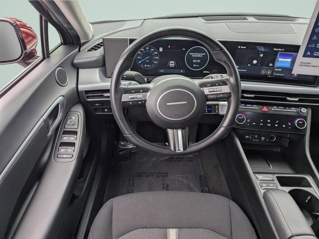 CARFAX One-Owner. This 2024 Hyundai Sonata SEL in Ultimate red features Convenience Package (12.3" LCD Instrument Cluster, 18" x 7.5J Aluminum Alloy Wheels, Auto-Dimming Mirror, Hyundai Digital Key 2.0 Premium, Leather-Wrapped Steering Wheel, LED Interior Lights, Option Group 02, Panoramic Sunroof, Radio: AM/FM/HD/SiriusXM/Navigation, and Wireless Device Charging), 17" x 7.0J Aluminum Alloy Wheels, 4-Wheel Disc Brakes, 6 Speakers, ABS brakes, Air Conditioning, Alloy wheels, AM/FM radio: SiriusXM, Apple CarPlay & Android Auto, Auto High-beam Headlights, Automatic temperature control, Brake assist, Bumpers: body-color, Carpeted Floor Mats, Delay-off headlights, Driver door bin, Driver vanity mirror, Dual front impact airbags, Dual front side impact airbags, Electronic Stability Control, Emergency communication system: Bluelink, Exterior Parking Camera Rear, Four wheel independent suspension, Front anti-roll bar, Front Bucket Seats, Front Center Armrest, Front dual zone A/C, Front reading lights, Fully automatic headlights, Heated door mirrors, Heated Front Bucket Seats, Heated front seats, Illuminated entry, Knee airbag, Low tire pressure warning, Occupant sensing airbag, Outside temperature display, Overhead airbag, Overhead console, Panic alarm, Passenger door bin, Passenger vanity mirror, Power door mirrors, Power driver seat, Power steering, Power windows, Premium Cloth Seating Surfaces, Radio data system, Radio: AM/FM/HD/SiriusXM, Rear anti-roll bar, Rear seat center armrest, Rear side impact airbag, Rear window defroster, Remote keyless entry, Security system, Speed control, Speed-sensing steering, Speed-Sensitive Wipers, Split folding rear seat, Steering wheel mounted audio controls, Tachometer, Telescoping steering wheel, Tilt steering wheel, Traction control, Trip computer, and Variably intermittent wipers . Visit our showroom 24/7 at Jenkinshyundaiofjacksonville or call 904-420-3100. FWD