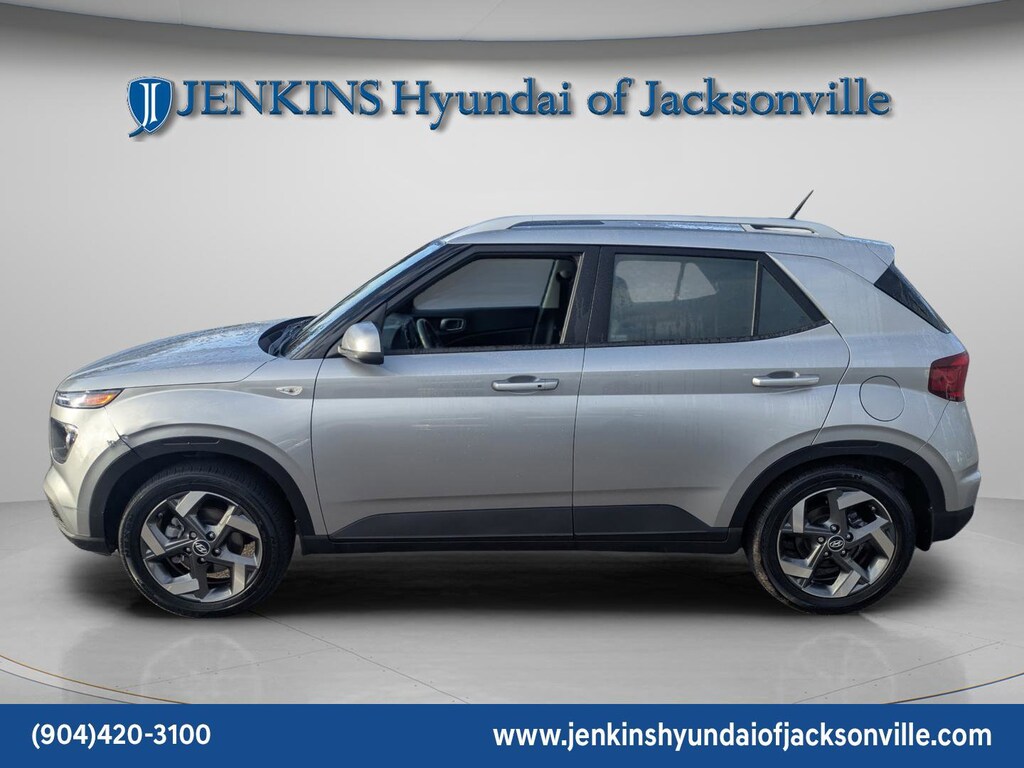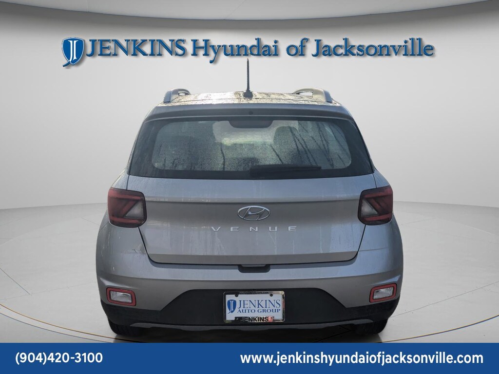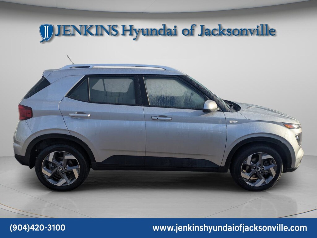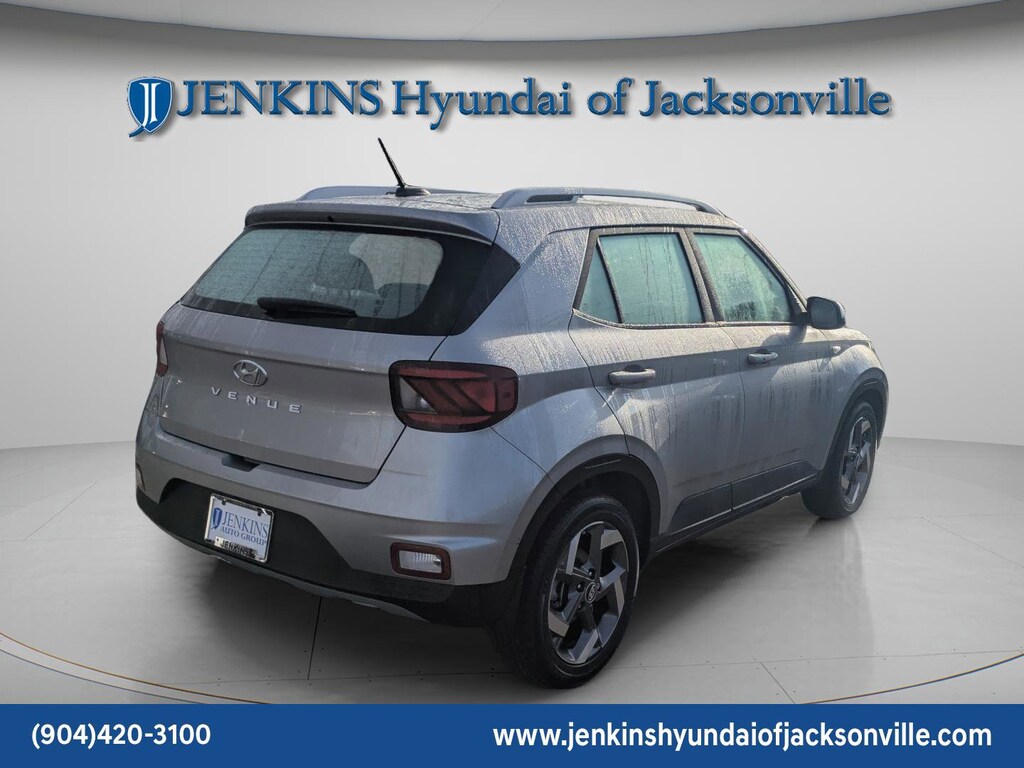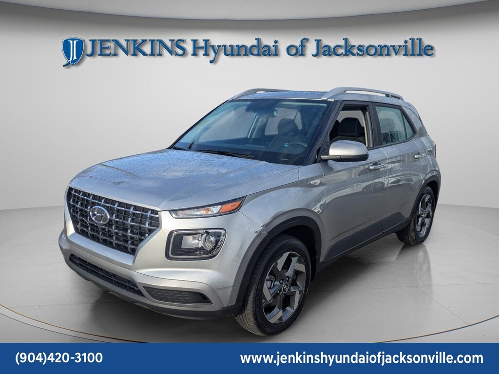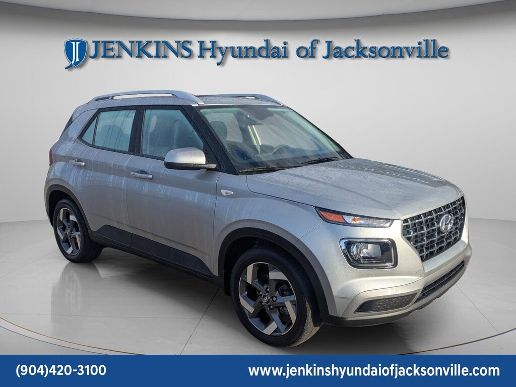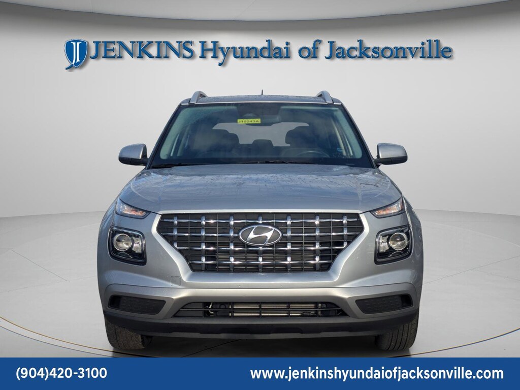 The price does not include tax, tag, license, an electronic filing fee of $449.00**, a private tag agency fee of $199.00**, and a predelivery service charge of $1199.00** **This charge represents costs and profit to the dealer for items such as inspecting, cleaning, and adjusting vehicles, as well as preparing documents related to the sale. * EPA-estimate metric: these are contingent on ideal conditions within a lab. Real-world situations such as carrying passengers or cargo, using climate control, driving style, and ambient temperatures can affect actual metrics. 29/33 City/Highway MPG CARFAX One-Owner. Clean CARFAX. This 2024 Hyundai Venue SEL in Shimmering Silver features Option Group 01, 4-Wheel Disc Brakes, 6 Speakers, 6.052 Axle Ratio, 6.5J x 17" Alloy Wheels, ABS brakes, Air Conditioning, Alloy wheels, AM/FM radio, Apple CarPlay & Android Auto, Auto High-beam Headlights, Automatic temperature control, Brake assist, Bumpers: body-color, Cargo Tray, Carpeted Floor Mats, Cloth Seat Trim, Delay-off headlights, Driver door bin, Driver vanity mirror, Dual front impact airbags, Dual front side impact airbags, Electronic Stability Control, First Aid Kit, Front anti-roll bar, Front Bucket Seats, Front Center Armrest, Front reading lights, Front wheel independent suspension, Fully automatic headlights, Illuminated entry, Leather Shift Knob, Leather steering wheel, Low tire pressure warning, Occupant sensing airbag, Outside temperature display, Overhead airbag, Overhead console, Panic alarm, Passenger door bin, Passenger vanity mirror, Power door mirrors, Power moonroof, Power steering, Power windows, Radio: AM/FM/HD Display Audio, Rear Bumper Applique, Rear Seat Cup Holder, Rear window defroster, Rear window wiper, Remote keyless entry, Roof rack: rails only, Security system, Speed control, Speed-sensing steering, Split folding rear seat, Spoiler, Steering wheel mounted audio controls, Tachometer, Telescoping steering wheel, Tilt steering wheel, Traction control, Trip computer, Variably intermittent wipers, and Wheel Locks . Visit our showroom 24/7 at Jenkinshyundaiofjacksonville or call 904-420-3100. FWD