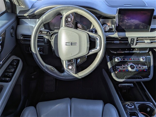 This vehicle comes equipped with Elements Package (Heated Rear Seat, Heated Steering Wheel, Rain Sensing Wipers, and Windshield Wiper De-Icer), Equipment Group 201A, Lincoln Co-Pilot360 Plus Package (360-Degree Camera w/Rear Camera Washer, Active Park Assist Plus, Adaptive Cruise Control w/Traffic Jam Assist, Evasive Steering Assist (ESA), Forward Sensing System, and Reverse Brake Assist), Rear Removable Package Tray, Sport Package (Body-Color Front Bumper w/Painted Lower Fascia, Body-Color Plastic Rear Bumper, Illuminated Front Scuff Plates, Unique Lincoln Design Black Mesh Upper Grille, and Wheels: 20" Bright Machined Aluminum), Technology Package (Additional Rear USB Ports (Types A & C), Heads-Up Display, Jeweled LED Headlamps, Lincoln Star Media Bin Light Prem Ambient Lighting, Phone As A Key, and Wireless Charging Pad), 14 Speakers, 19" Bright Machined Aluminum Wheels, 3.81 Axle Ratio, 4-Wheel Disc Brakes, ABS brakes, Air Conditioning, Alloy wheels, AM/FM radio: SiriusXM, Auto High-beam Headlights, Auto tilt-away steering wheel, Auto-dimming door mirrors, Auto-dimming Rear-View mirror, Automatic temperature control, Brake assist, Bumpers: body-color, Compass, Delay-off headlights, Driver door bin, Driver vanity mirror, Dual front impact airbags, Dual front side impact airbags, Electronic Stability Control, Emergency communication system, Four wheel independent suspension, Front anti-roll bar, Front Bucket Seats, Front Center Armrest, Front dual zone A/C, Front fog lights, Front reading lights, Fully automatic headlights, Garage door transmitter: HomeLink, Heated door mirrors, Heated front seats, Illuminated entry, Knee airbag, Leather steering wheel, Low tire pressure warning, Memory seat, Navigation System, Occupant sensing airbag, Outside temperature display, Overhead airbag, Overhead console, Panic alarm, Passenger door bin, Passenger vanity mirror, Perfect Position Seats, Pinstripe Aluminum Applique, Power door mirrors, Power driver seat, Power Liftgate, Power moonroof: Panoramic Vista Roof, Power passenger seat, Power steering, Power windows, Premium Leather Heated Comfort Seats, Radio data system, Radio: Revel Audio System w/HD Radio & MP3, Rear anti-roll bar, Rear reading lights, Rear seat center armrest, Rear window defroster, Rear window wiper, Remote keyless entry, Security system, SiriusXM Radio, Speed control, Speed-sensing steering, Speed-Sensitive Wipers, Split folding rear seat, Spoiler, Steering wheel memory, Steering wheel mounted A/C controls, Steering wheel mounted audio controls, SYNC 3 Communications & Entertainment System, Tachometer, Telescoping steering wheel, Tilt steering wheel, Traction control, Trip computer, Turn signal indicator mirrors, and Variably intermittent wipers .