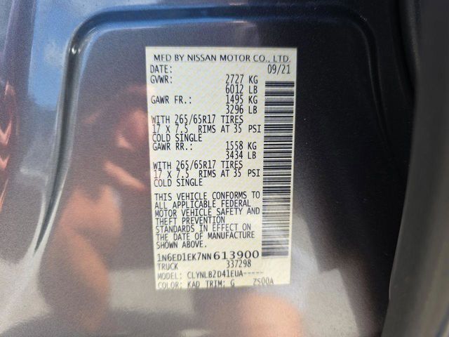 The price does not include tax, tag, license, an electronic filing fee of $449.00**, a private tag agency fee of $199.00**, and a predelivery service charge of $1199.00** **This charge represents costs and profit to the dealer for items such as inspecting, cleaning, and adjusting vehicles, as well as preparing documents related to the sale. * EPA-estimate metric: these are contingent on ideal conditions within a lab. Real-world situations such as carrying passengers or cargo, using climate control, driving style, and ambient temperatures can affect actual metrics. 17/22 City/Highway MPG 4WD. Recent Arrival! Gun Metallic 2022 Nissan Frontier SV 4WD 9-Speed Automatic 3.8L DI DOHC 24V V6