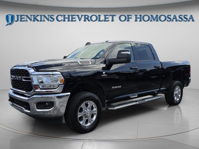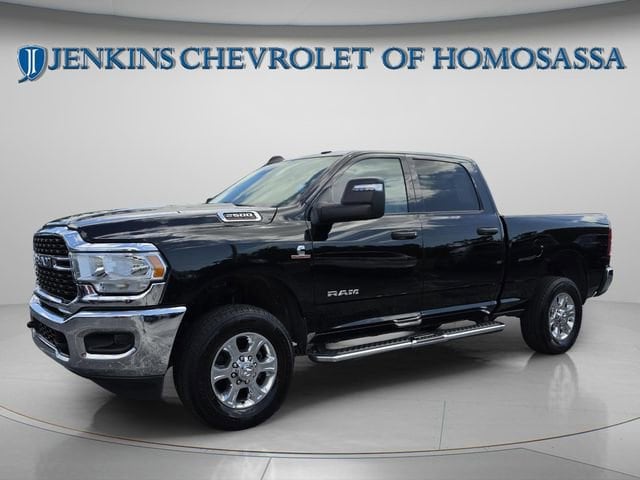 This vehicle comes equipped with Level 1 Equipment Group (2 Way Rear Headrest Seat, 2nd Row In Floor Storage Bins, 4 Way Front Headrests, 40/20/40 Split Bench Seat, 4G LTE Wi-Fi Hot Spot, 8.4 Touchscreen Display, Apple CarPlay, Auto Power-Folding Mirrors, Big Horn IP Badge, Black Exterior Mirrors, Bluetooth Handsfree Phone & Audio, Center Hub, Connectivity - US/Canada, Dual Glove Boxes, Exterior Mirrors Courtesy Lamps, Exterior Mirrors w/Heating Element, Exterior Mirrors w/Supplemental Signals, Foam Bottle Insert (Door Trim Panel), Footwell Courtesy Lamp, For Details, Visit DriveUconnect.com, For More Info, Call 800-643-2112, Forward & Reverse Utility Lights, Front Armrest w/Cupholders, Front Center Seat Cushion Storage, Front Fog Lamps, Front Seat Back Map Pockets, Global Telematics Box Module (TBM), Glove Box Lamp, Google Android Auto, GPS Antenna Input, Integrated Center Stack Radio, Integrated Voice Command w/Bluetooth, Leather Wrapped Steering Wheel, Locking Lower Glove Box, Manual Adjust 4-Way Front Passenger Seat, Mirror Running Lights, Power 2-Way Driver Lumbar Adjust, Power Adjust 8-Way Driver Seat, Power Adjust Mirrors, Power Adjustable Convex Aux Mirrors, Power Heated Fold Telescope Mirrors, Power Telescoping Mirrors, Rear 60/40 Folding Seat, Rear Dome w/On/Off Switch Lamp, Remote USB Port - Charge Only, Selectable Tire Fill Alert, SiriusXM Radio Service, SiriusXM Satellite Radio, Steering Wheel Mounted Audio Controls, Storage Tray, and Wheels: 18 x 8.0 Polished Aluminum), Quick Order Package 2HZ Big Horn, 3.73 Axle Ratio, 4-Wheel Disc Brakes, 6 Speakers, ABS brakes, Active Noise Control System, Air Conditioning, Anti-Spin Differential Rear Axle, Brake assist, Bumpers: chrome, Center Stack Storage Drawer, Chrome Flat Cab-Length Side Steps, Cloth 40/20/40 Bench Seat, Compass, Delay-off headlights, Driver door bin, Dual front impact airbags, Dual front side impact airbags, Electronic Stability Control, Electronically Controlled Throttle, Emergency communication system: SiriusXM Guardian, Front anti-roll bar, Front Center Armrest w/Storage, Front License Plate Bracket, Front reading lights, Fully automatic headlights, Heated door mirrors, Illuminated entry, Low tire pressure warning, Manual Adjust 4-Way Driver Seat, Manufacturer's Statement of Origin, Occupant sensing airbag, Outside temperature display, Overhead airbag, Overhead console, Panic alarm, ParkView Rear Back-Up Camera, Passenger door bin, Passenger vanity mirror, Power door mirrors, Power steering, Power windows, Premium Cloth 40/20/40 Bench Seat (DISC), Radio data system, Radio: Uconnect 3 w/5 Display, Radio: Uconnect 5 W w/8.4 Display, Rear anti-roll bar, Rear Folding Seat, Rear seat center armrest, Rear step bumper, Remote keyless entry, Speed control, Tachometer, Tilt steering wheel, Tip Start, Tow Hooks, Traction control, Trip computer, Turn signal indicator mirrors, Variably intermittent wipers, Voltmeter, and Wheels: 18 x 8.0 Steel Chrome Clad . Jenkins Chevrolet of Homosassa proudly serving Homosassa, Spring Hill, Hernando, Crystal River, Beverly Hills, Inverness. Just a half hour North of Buccaneer Bay. Come see the large, expansive inventory of the Jenkins Auto Group. Clean CARFAX. CARFAX One-Owner. Diamond Black Crystal Pearlcoat 2024 Ram 2500 Big Horn 4WD 6-Speed Automatic Cummins 6.7L I6 Turbodiesel