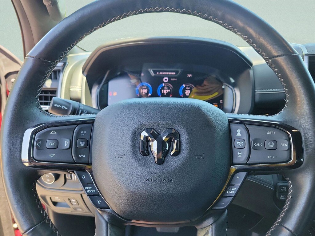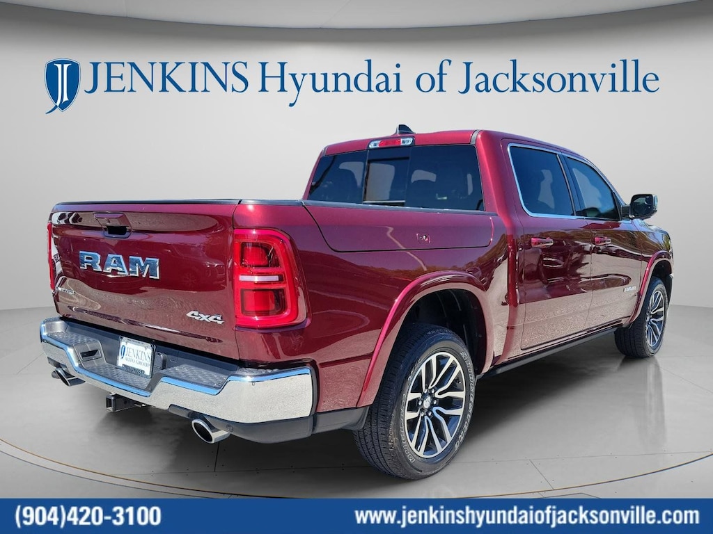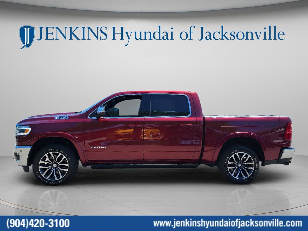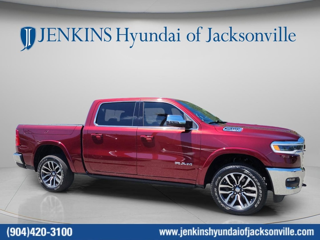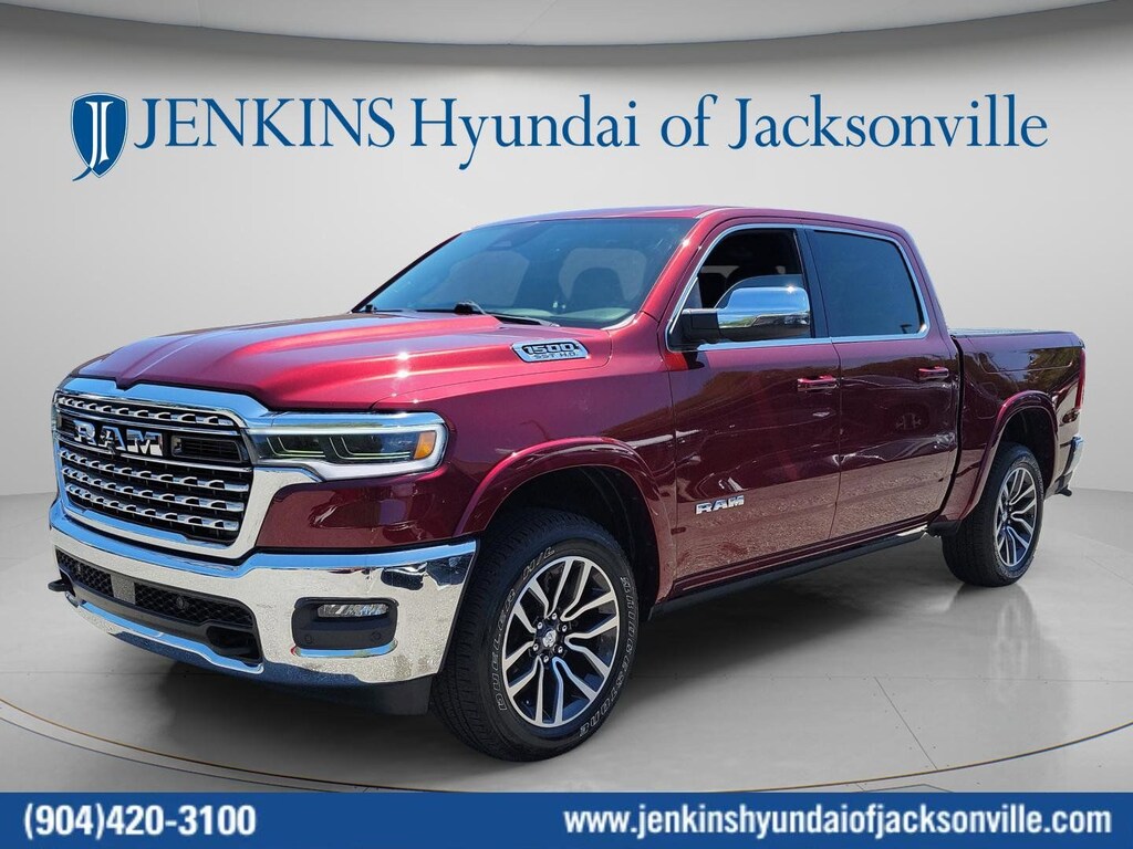 The price does not include tax, tag, license, an electronic filing fee of $449.00**, a private tag agency fee of $199.00**, and a predelivery service charge of $1199.00** **This charge represents costs and profit to the dealer for items such as inspecting, cleaning, and adjusting vehicles, as well as preparing documents related to the sale. * EPA-estimate metric: these are contingent on ideal conditions within a lab. Real-world situations such as carrying passengers or cargo, using climate control, driving style, and ambient temperatures can affect actual metrics. 15/21 City/Highway MPG This 2025 Ram 1500 Limited in Delmonico Red Pearlcoat features Quick Order Package 22M Limited, 19 Speakers, 3.92 Rear Axle Ratio, 4-Wheel Disc Brakes, 4G LTE Wi-Fi Hot Spot, ABS brakes, Adjustable pedals, Air Conditioning, Alloy wheels, AM/FM radio: SiriusXM with 360L, Apple CarPlay, Apple CarPlay/Android Auto, Audio memory, Auto High-beam Headlights, Auto Power-Folding Mirrors, Auto-dimming door mirrors, Auto-Dimming Exterior Driver Mirror, Auto-dimming Rear-View mirror, Auto-leveling suspension, Automatic temperature control, Bodyside moldings, Brake assist, Bumpers: chrome, Chrome Exterior Mirrors, Compass, Connected Travel & Traffic Services, Connectivity - US/Canada, Convex Wide-Angle Exterior Mirror Insert, Delay-off headlights, Dome Dual LED Reading Lamp, Driver door bin, Driver vanity mirror, Dual front impact airbags, Dual front side impact airbags, Dual-Pane Panoramic Sunroof, Electronic Stability Control, Exterior 115V AC Outlet, Exterior Mirrors Courtesy Lamps, Exterior Mirrors w/Heating Element, Exterior Mirrors w/Memory, Exterior Mirrors w/Supplemental Signals, Front anti-roll bar, Front Bucket Seats, Front Center Armrest w/Storage, Front dual zone A/C, Front fog lights, Front License Plate Bracket, Front reading lights, Front wheel independent suspension, Fully automatic headlights, Garage door transmitter, Genuine wood console insert, Genuine wood dashboard insert, Genuine wood door panel insert, Google Android Auto, GPS Antenna Input, GPS Navigation, harman/kardon® Speakers, HD Radio, Heated door mirrors, Heated front seats, Heated rear seats, Heated steering wheel, Illuminated entry, Integrated Voice Command w/Bluetooth, Leather steering wheel, LED Dome/Reading Lamp, Low tire pressure warning, Manufacturer's Statement of Origin, Memory seat, Navigation System, Occupant sensing airbag, Outside temperature display, Overhead airbag, Overhead console, Panic alarm, ParkView Rear Back-Up Camera, Passenger door bin, Passenger vanity mirror, Pedal memory, Power door mirrors, Power driver seat, Power passenger seat, Power steering, Power windows, Premium Quilted Leather Bucket Seats, Radio data system, Radio: Uconnect 5 Nav w/12.0" Display, Rain sensing wipers, Rear anti-roll bar, Rear reading lights, Rear seat center armrest, Rear step bumper, Rear window defroster, Remote keyless entry, Security system, SiriusXM w/360L, Speed control, Split folding rear seat, Steering wheel mounted audio controls, Tachometer, Telescoping steering wheel, Tilt steering wheel, Traction control, Trailer Brake Control, Trip computer, Turn signal indicator mirrors, USB Host Flip, Variably intermittent wipers, Ventilated front seats, Ventilated rear seats, Voltmeter, and Wheels: 20" x 9" Premium Paint/Polished . Visit our showroom 24/7 at Jenkinshyundaiofjacksonville or call 904-420-3100. 4WD