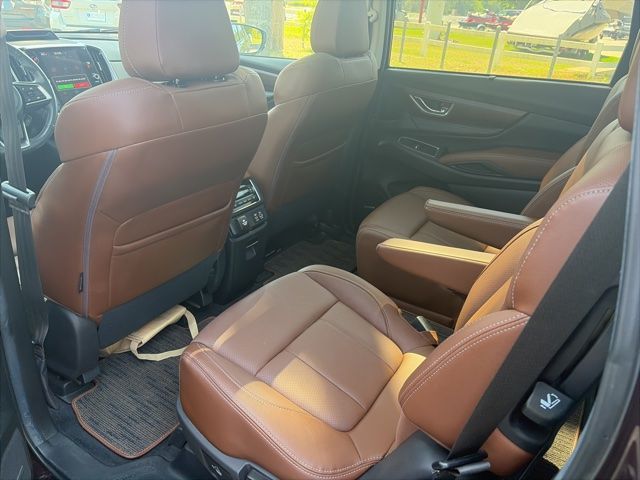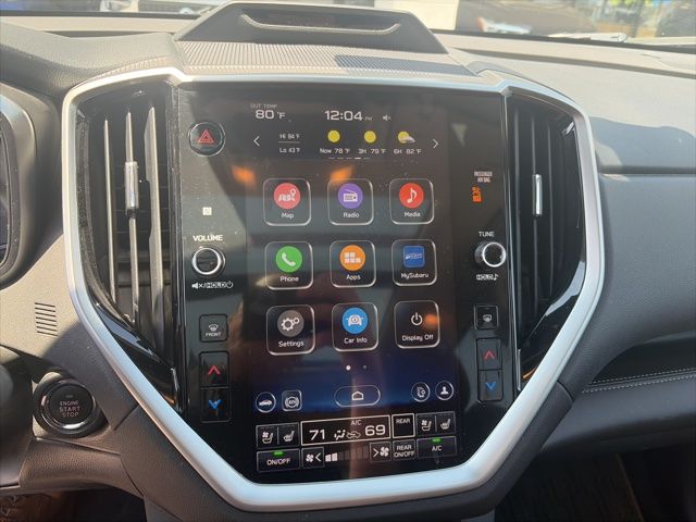 This vehicles comes equipped with Standard Model, 14 Speakers, 2nd Row Captain's Chairs Rear Seatback Protector, 3rd Row Bench Rear Seatback Protector, 3rd row seats: bench, 4-Wheel Disc Brakes, ABS brakes, Air Conditioning, Alloy wheels, AM/FM radio: SiriusXM, Auto High-beam Headlights, Auto-dimming Rear-View mirror, Automatic temperature control, Axle Ratio: 4.44, Brake assist, Bumpers: body-color, Cargo Tray, Compass, Dark Mahogany Pearl Body Side Molding, Delay-off headlights, Driver door bin, Driver vanity mirror, Dual front impact airbags, Dual front side impact airbags, Electronic Stability Control, Emergency communication system: STARLINK Safety and Security (Subscription Required), Exterior Parking Camera Rear, Four wheel independent suspension, Front anti-roll bar, Front Bucket Seats, Front Center Armrest, Front dual zone A/C, Front fog lights, Front reading lights, Fully automatic headlights, Garage door transmitter: HomeLink, harman/kardon® Speakers, Heated & Ventilated Front Bucket Seats, Heated door mirrors, Heated front seats, Heated rear seats, Heated steering wheel, HVAC memory, Illuminated entry, Knee airbag, Leather Shift Knob, Leather steering wheel, Low tire pressure warning, Memory seat, Navigation System, Occupant sensing airbag, Outside temperature display, Overhead airbag, Overhead console, Panic alarm, Passenger door bin, Passenger vanity mirror, Perforated Nappa Leather-Trimmed Upholstery, Power door mirrors, Power driver seat, Power Liftgate, Power moonroof, Power passenger seat, Power steering, Power windows, Radio data system, Radio: Subaru STARLINK 11.6" Multimedia Nav System, Rain sensing wipers, Rear air conditioning, Rear anti-roll bar, Rear Bumper Cover, Rear reading lights, Rear window defroster, Rear window wiper, Reclining 3rd row seat, Remote keyless entry, Security system, Speed control, Speed-sensing steering, Split folding rear seat, Spoiler, STARLINK/Apple CarPlay/Android Auto, Steering wheel mounted audio controls, Tachometer, Telescoping steering wheel, Tilt steering wheel, Traction control, Trailer Hitch, Trip computer, Turn signal indicator mirrors, Variably intermittent wipers, Ventilated front seats, and Wheels: 20" x 7.5 J Dk Gray Alloy w/Machine Finish . Recent Arrival!
