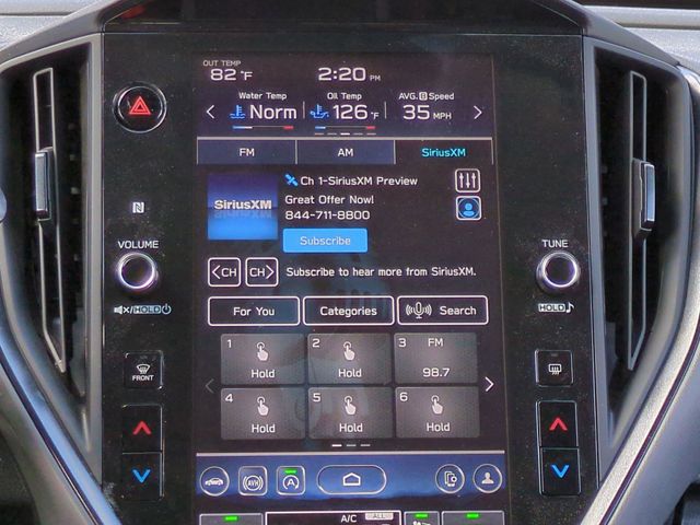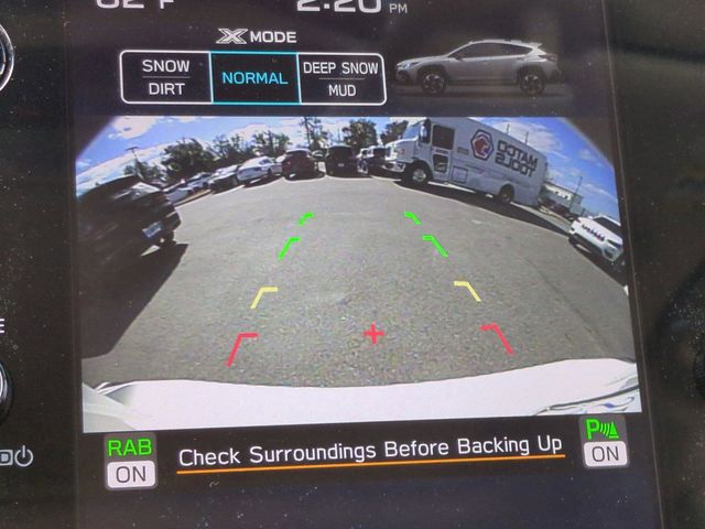 This vehicle comes equipped with Crosstrek Mirror Package (Auto-Dimming Exterior Mirror w/Approach Light and Auto-Dimming Mirror w/Compass & HomeLink), harman/kardon Audio & Power Moonroof & Navigation (harman/kardon Surround Sound Speaker System, Power Moonroof, and Radio: Subaru STARLINK 11.6" Multimedia Nav System), 3.70 Axle Ratio, 4-Wheel Disc Brakes, 6 Speakers, ABS brakes, Air Conditioning, All-Weather Floor Liners, Alloy wheels, AM/FM radio: SiriusXM, Anti-whiplash front head restraints, Auto High-beam Headlights, Automatic temperature control, Brake assist, Bumpers: body-color, Cargo Net, Driver door bin, Driver vanity mirror, Dual front impact airbags, Dual front side impact airbags, Electronic Stability Control, Emergency communication system: STARLINK Safety and Security (Subscription Required), Exterior Parking Camera Rear, Four wheel independent suspension, Front anti-roll bar, Front Bucket Seats, Front Center Armrest, Front dual zone A/C, Front fog lights, Front reading lights, Fully automatic headlights, Heated door mirrors, Heated Front Bucket Seats, Heated front seats, Illuminated entry, Knee airbag, Leather Shift Knob, Leather-Trimmed Upholstery, LED Upgrade, Low tire pressure warning, Occupant sensing airbag, Outside temperature display, Overhead airbag, Overhead console, Panic alarm, Passenger door bin, Passenger vanity mirror, Power door mirrors, Power driver seat, Power steering, Power windows, Radio data system, Radio: Subaru STARLINK 11.6" Multimedia Plus Sys, Rear anti-roll bar, Rear seat center armrest, Rear Seatback Protector, Rear window defroster, Rear window wiper, Remote keyless entry, Security system, Speed control, Speed-sensing steering, Split folding rear seat, Spoiler, STARLINK/Apple CarPlay/Android Auto, Steering wheel mounted audio controls, Tachometer, Telescoping steering wheel, Tilt steering wheel, Traction control, Trip computer, Turn signal indicator mirrors, Variably intermittent wipers, and Wheels: 18" x 7.0J Dark Gray Aluminum Alloy .