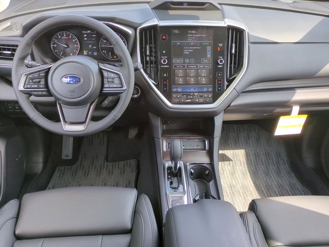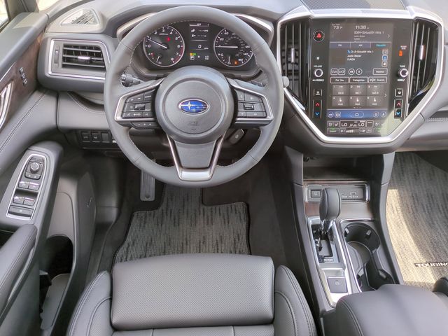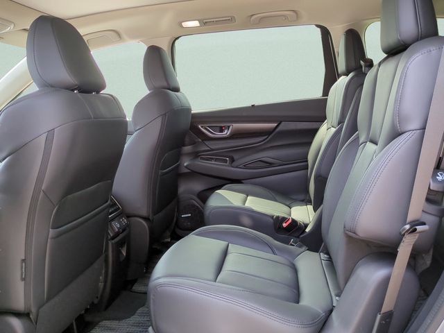 This vehicles comes equipped with Standard Model, 14 Speakers, 3rd row seats: bench, 4-Wheel Disc Brakes, ABS brakes, Air Conditioning, Alloy wheels, AM/FM radio: SiriusXM with 360L, Apple CarPlay & Android Auto, Auto High-beam Headlights, Auto-Dimming Exterior Mirror with Approach Light, Auto-dimming Rear-View mirror, Automatic temperature control, Brake assist, Bumpers: body-color, Cargo Tray, Compass, Delay-off headlights, Driver door bin, Driver vanity mirror, Dual front impact airbags, Dual front side impact airbags, Electronic Stability Control, Emergency communication system: MySubaru Companion (5-years free), Exterior Parking Camera Rear, Four wheel independent suspension, Front anti-roll bar, Front Bucket Seats, Front Center Armrest, Front Door Projector Lights, Front dual zone A/C, Front fog lights, Front reading lights, Fully automatic headlights, Garage door transmitter: HomeLink, harman/kardon® Speakers, Heated and Ventilated Front Bucket Seats, Heated door mirrors, Heated front seats, Heated rear seats, Heated steering wheel, HVAC memory, Illuminated entry, Knee airbag, Leather Shift Knob, Leather steering wheel, LED Upgrade, Low tire pressure warning, Memory seat, Navigation system: MySubaru Navigator (1-year trial), Occupant sensing airbag, Outside temperature display, Overhead airbag, Overhead console, Panic alarm, Passenger door bin, Passenger vanity mirror, Perforated Nappa Leather-Trimmed Upholstery, Power door mirrors, Power driver seat, Power Liftgate, Power moonroof, Power passenger seat, Power steering, Power windows, Radio data system, Radio: Subaru 11.6" Multimedia System with Navigation, Rain sensing wipers, Rear air conditioning, Rear anti-roll bar, Rear reading lights, Rear window defroster, Rear window wiper, Reclining 3rd row seat, Remote keyless entry, Security system, Speed control, Speed-sensing steering, Split folding rear seat, Spoiler, Steering wheel mounted audio controls, Tachometer, Telescoping steering wheel, Tilt steering wheel, Traction control, Trip computer, Turn signal indicator mirrors, USB Charging Ports, Variably intermittent wipers, Ventilated front seats, and Wheels: 20" x 7.5 J Dark Gray Alloy with Machine Finish . Recent Arrival!