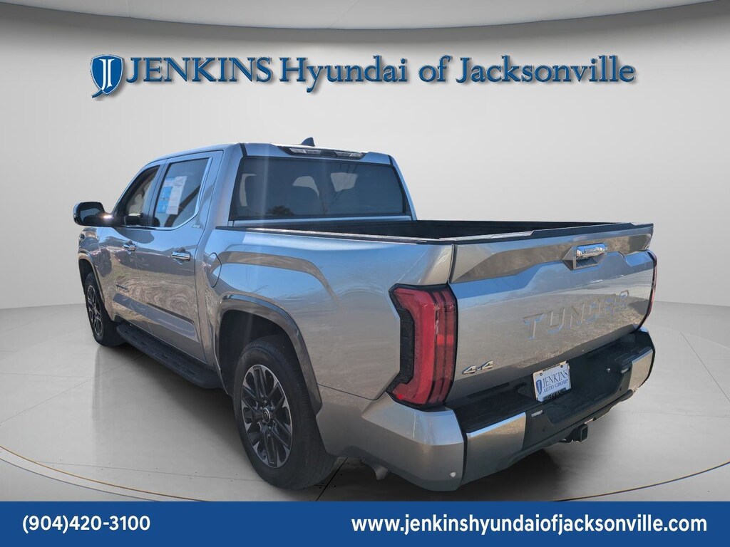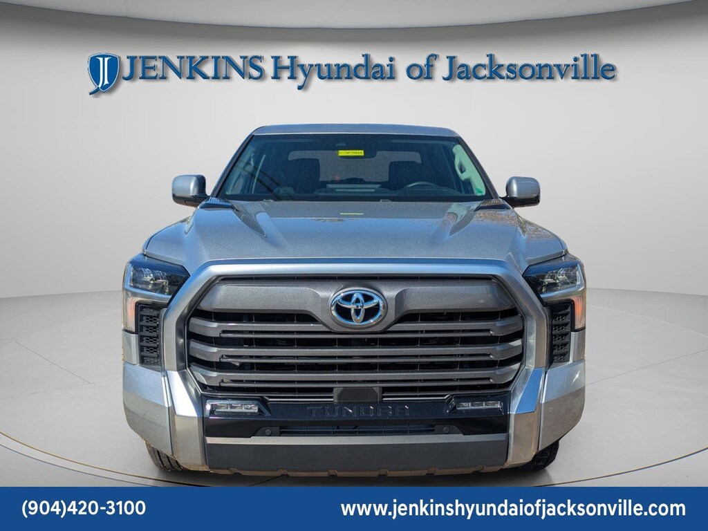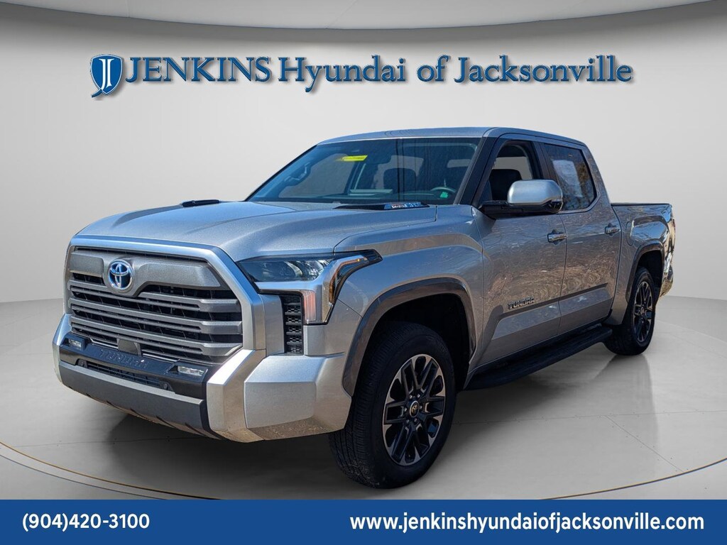 VIN 5TFJC5DB5RX073910 is a 2024 Toyota Tundra 4x4 that brings serious presence, power, and everyday practicality in one bold package. Under the hood youve got Toyotas proven i-FORCE twin-turbo V6 delivering strong torque for towing, hauling, or just owning the highway, paired with a smooth-shifting transmission and a confident 4WD system thats ready for job sites or weekend adventures. The redesigned body style gives it that aggressive, modern stance, while the spacious CrewMax cabin offers premium comfort, advanced tech, and the reliability Toyota trucks are famous for. Whether youre pulling a boat, loading up for a road trip, or just want a truck that makes a statement in the driveway, this Tundra checks every box capability, style, and long-term dependability. The price does not include tax, tag, license, an electronic filing fee of $449.00**, a private tag agency fee of $199.00**, and a predelivery service charge of $1199.00** **This charge represents costs and profit to the dealer for items such as inspecting, cleaning, and adjusting vehicles, as well as preparing documents related to the sale. * EPA-estimate metric: these are contingent on ideal conditions within a lab. Real-world situations such as carrying passengers or cargo, using climate control, driving style, and ambient temperatures can affect actual metrics. 19/22 City/Highway MPG CARFAX One-Owner. This 2024 Toyota Tundra Hybrid Limited in features 20" x 8" Alloy Wheels, 3.31 Axle Ratio, 4-Wheel Disc Brakes, 9 Speakers, ABS brakes, Air Conditioning, Alloy wheels, AM/FM radio: SiriusXM, Apple CarPlay/Android Auto, Auto High-beam Headlights, Auto-dimming door mirrors, Auto-dimming Rear-View mirror, Automatic temperature control, Brake assist, Bumpers: body-color, Delay-off headlights, Driver door bin, Driver vanity mirror, Dual front impact airbags, Dual front side impact airbags, Electronic Stability Control, Emergency communication system: Safety Connect (10-year trial), Exterior Parking Camera Rear, Front anti-roll bar, Front Bucket Seats, Front Center Armrest, Front dual zone A/C, Front fog lights, Front reading lights, Front wheel independent suspension, Fully automatic headlights, Garage door transmitter: HomeLink, Heated & Ventilated Front Bucket Seats, Heated door mirrors, Heated front seats, Heated steering wheel, Illuminated entry, Knee airbag, Leather Shift Knob, Low tire pressure warning, Memory seat, Navigation System, Occupant sensing airbag, Outside temperature display, Overhead airbag, Overhead console, Panic alarm, Passenger door bin, Passenger vanity mirror, Power door mirrors, Power driver seat, Power passenger seat, Power steering, Power windows, Radio data system, Radio: Audio Plus, Radio: Premium Audio w/JBL, Rear reading lights, Rear seat center armrest, Rear step bumper, Rear window defroster, Remote keyless entry, Security system, SofTex Seat Trim, Speed control, Speed-sensing steering, Split folding rear seat, Steering wheel mounted audio controls, Tachometer, Telescoping steering wheel, Tilt steering wheel, Traction control, Trip computer, Turn signal indicator mirrors, Variably intermittent wipers, Ventilated front seats, and Voltmeter . Visit our showroom 24/7 at Jenkinshyundaiofjacksonville or call 904-420-3100. 4WD