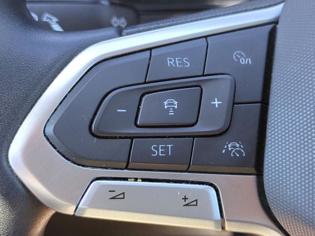 This vehicle comes equipped with 4-Wheel Disc Brakes, 5.20 Axle Ratio, 9 Speakers, ABS brakes, Active Blind Spot Monitor, Air Conditioning, Alloy wheels, AM/FM radio: SiriusXM with 360L, Auto High-beam Headlights, Auto-dimming Rear-View mirror, Automatic temperature control, Brake assist, Bumpers: body-color, Compass, Delay-off headlights, Driver door bin, Driver vanity mirror, Dual front impact airbags, Dual front side impact airbags, Electronic Stability Control, Emergency communication system: Car-Net, Exterior Parking Camera Rear, Four wheel independent suspension, Front anti-roll bar, Front Bucket Seats, Front Center Armrest, Front dual zone A/C, Front reading lights, Front Strut Rear Multi-Link Suspension, Fully automatic headlights, Heated & Ventilated Front Comfort Sport Seats, Heated door mirrors, Heated front seats, Heated steering wheel, Illuminated entry, Leather Shift Knob, Low tire pressure warning, Navigation system: VW Car-Net Guide & Inform, Occupant sensing airbag, Outside temperature display, Overhead airbag, Overhead console, Panic alarm, Passenger door bin, Passenger vanity mirror, Perforated Vienna Leather Seating Surfaces, Power door mirrors, Power driver seat, Power steering, Power windows, Radio data system, Radio: MIB3 Discover Media AM/FM/HD, Rain sensing wipers, Rear anti-roll bar, Rear Parking Sensors, Rear seat center armrest, Rear window defroster, Rear window wiper, Remote keyless entry, Roof rack: rails only, Security system, Speed control, Speed-sensing steering, Split folding rear seat, Spoiler, Steering wheel mounted audio controls, Tachometer, Telescoping steering wheel, Tilt steering wheel, Traction control, Trip computer, Variably intermittent wipers, Ventilated front seats, and Wheels: 19" 2-Tone Machined Alloy .