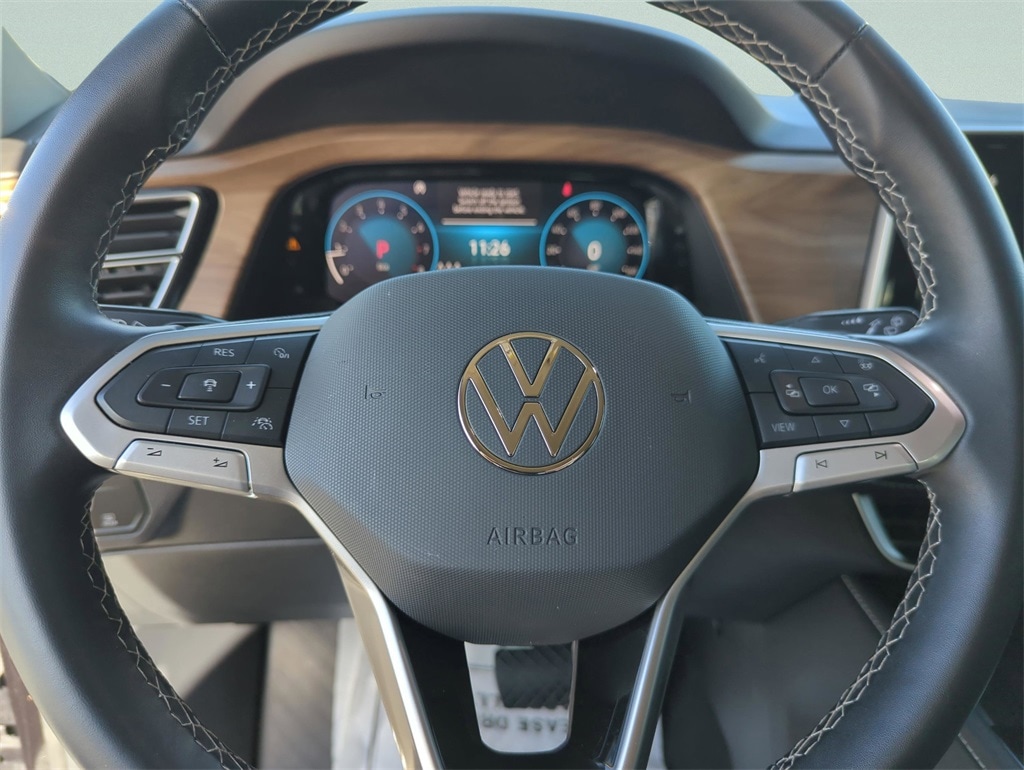 The price does not include tax, tag, license, an electronic filing fee of $449.00**, a private tag agency fee of $199.00**, and a predelivery service charge of $1199.00** **This charge represents costs and profit to the dealer for items such as inspecting, cleaning, and adjusting vehicles, as well as preparing documents related to the sale. * EPA-estimate metric: these are contingent on ideal conditions within a lab. Real-world situations such as carrying passengers or cargo, using climate control, driving style, and ambient temperatures can affect actual metrics. 20/26 City/Highway MPG Atlas 2.0T SE w/Technology, 4D Sport Utility, Deep Black Pearl, Titan Black Artificial Leather, 20" 2-tone machined alloy wheels, Auto High-beam Headlights, Auto-dimming Rear-View mirror, Automatic temperature control, Brake assist, Delay-off headlights, Electronic Stability Control, Emergency communication system: VW Car-Net Safe & Secure 5-year, Front dual zone A/C, Front fog lights, Fully automatic headlights, Heated front seats, Heated steering wheel, Illuminated entry, Panic alarm, perforated V-Tex leatherette seating surfaces, Power Liftgate, Rain sensing wipers, Remote keyless entry, Security system, Ventilated front seats.
